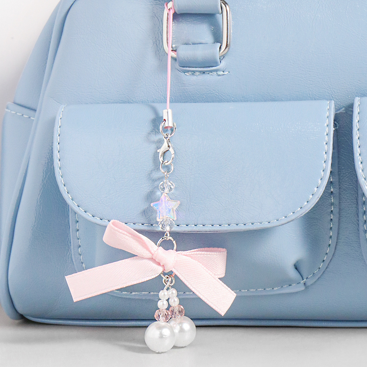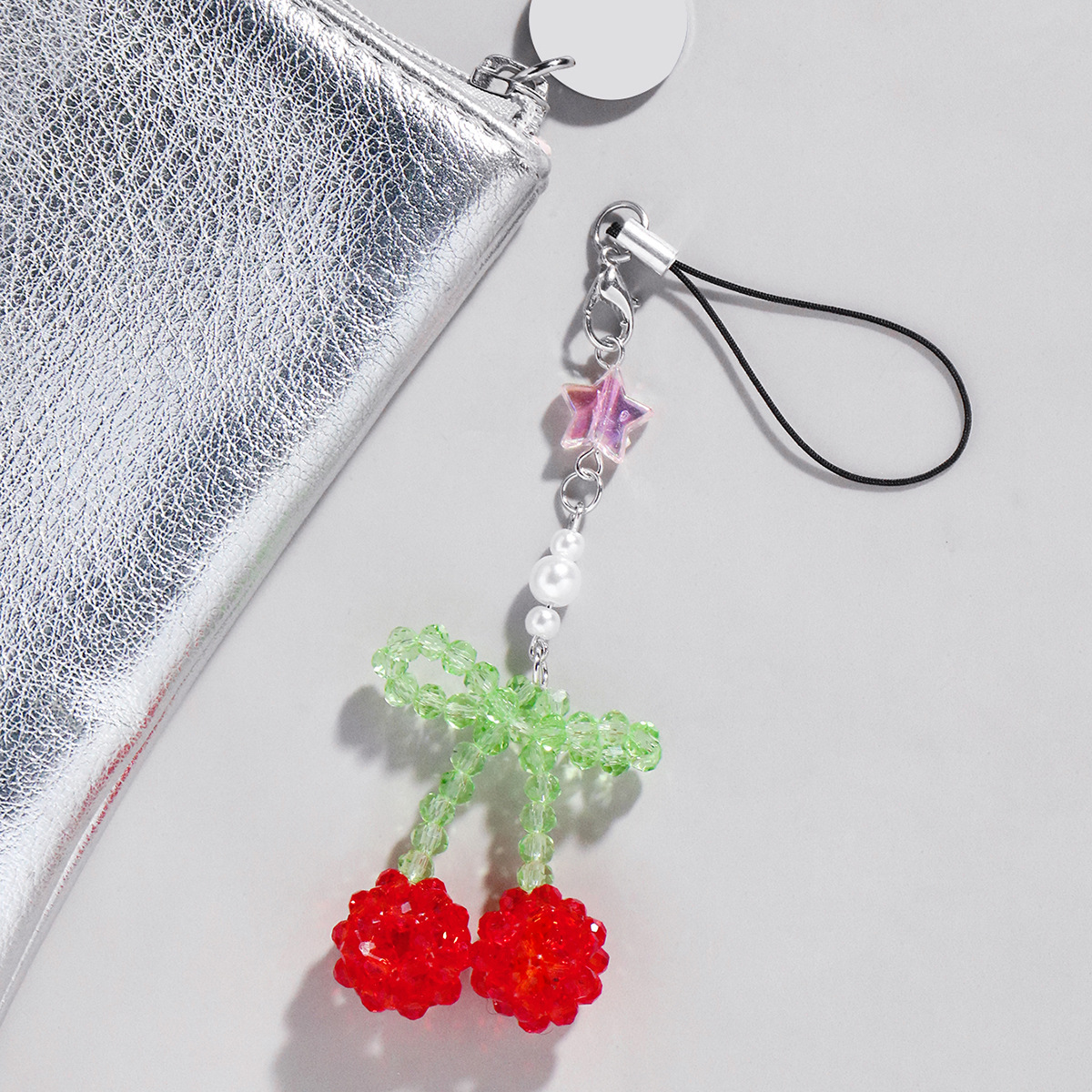 クロスボーダー爆金insかわいいシンプルな手作りビーズ蝶ネクタイ小さくらんぼ星真珠ペンダント携帯電話ペンダント