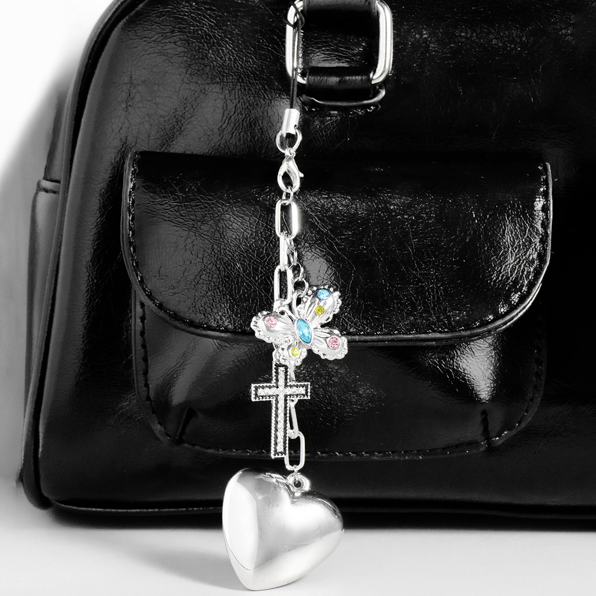 クロスボーダー爆金ファッション軽豪華銀色チェーンカラードリル蝶十字架蝶結び星ペンダント携帯電話ペンダント