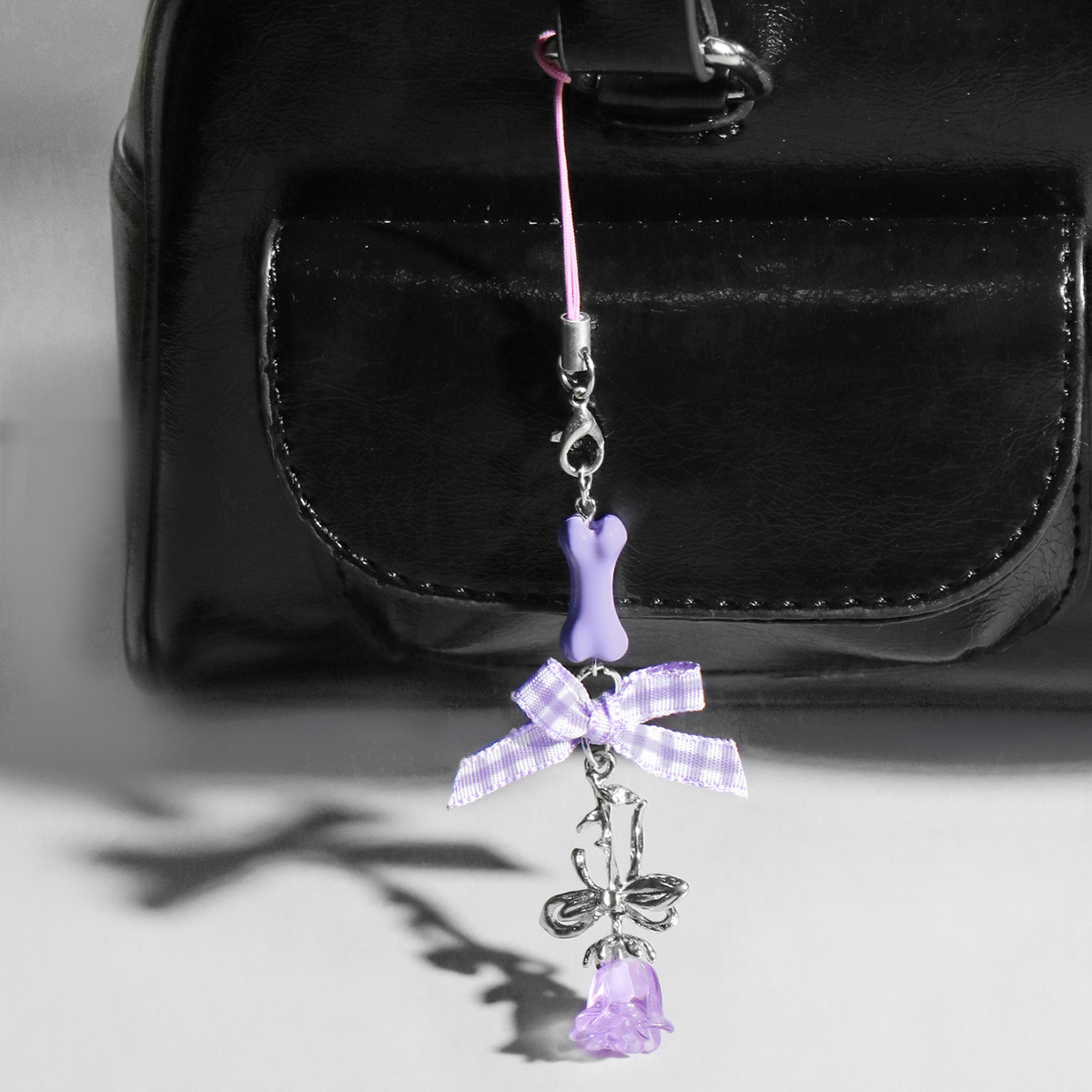国境を越えて起爆したins韓系シンプルな紫色の骨棒格子リボンバラペンダント携帯電話ペンダント