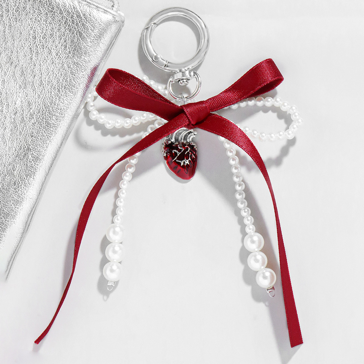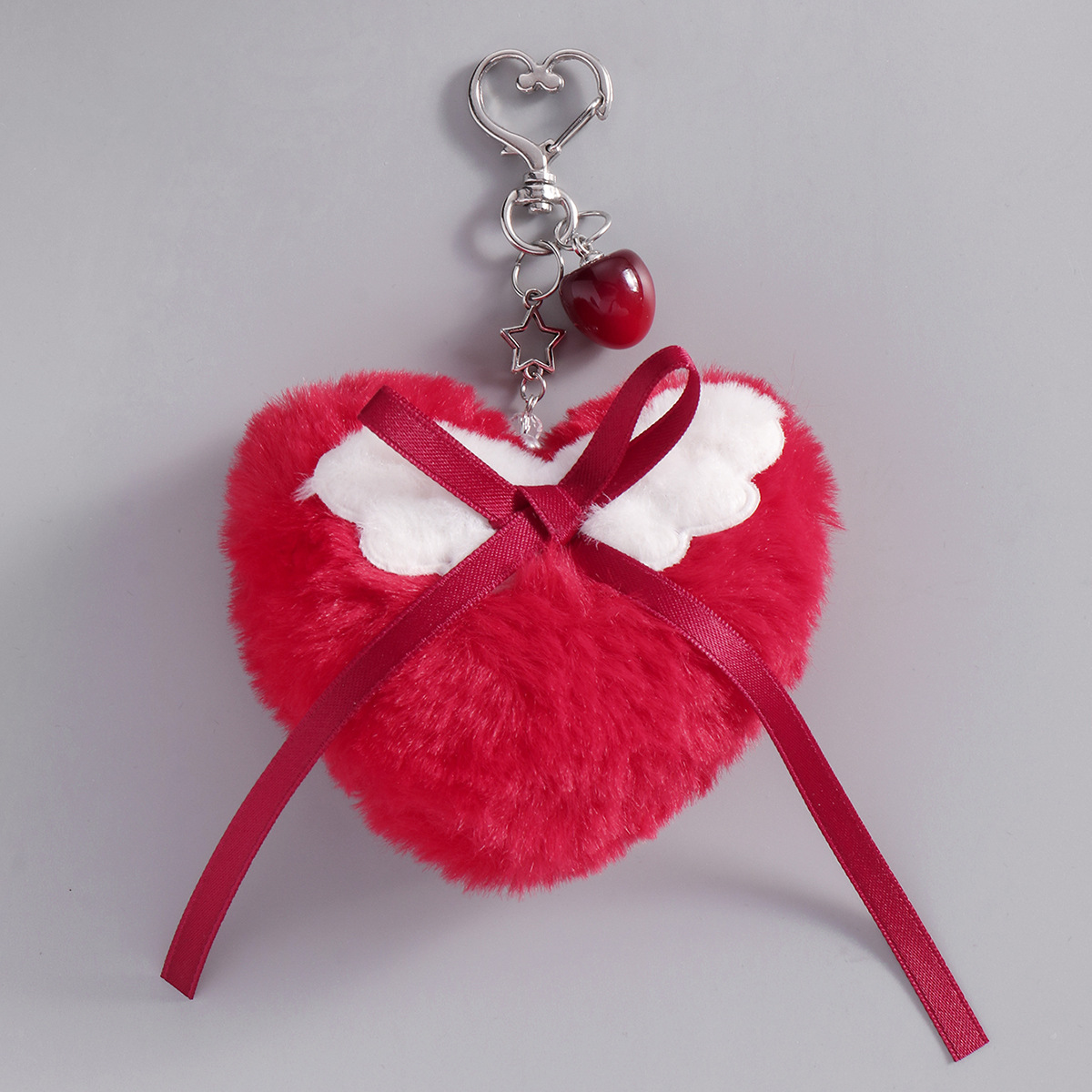 越境して爆発する秋冬の韓系の甘い赤色のリボンのぬいぐるみの愛の翼のさくらんぼのペンダントのキーホルダー