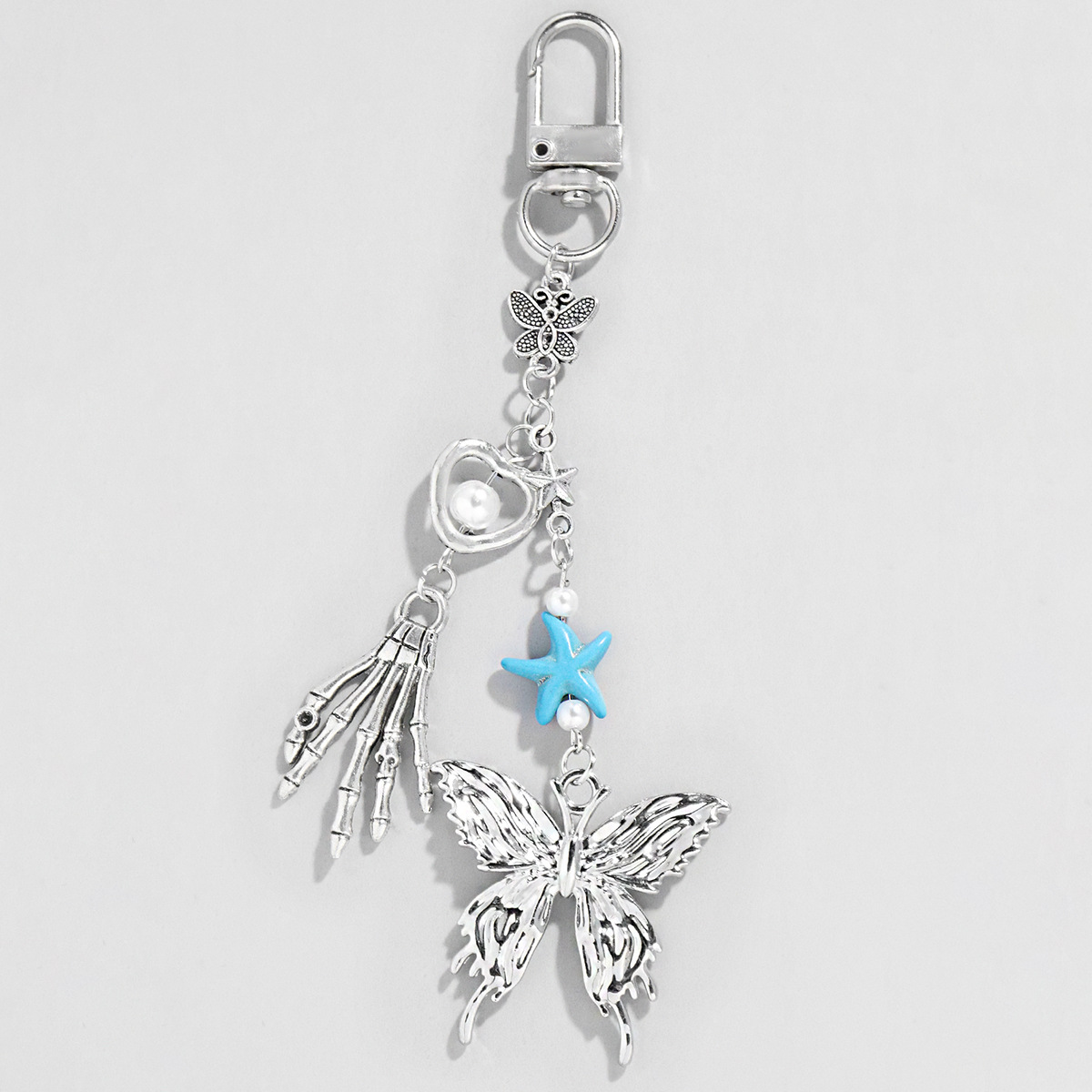 越境爆金ins個性暗黒甘酷風銀色クロス蝶狸猫飛蛾キーホルダーストラップ