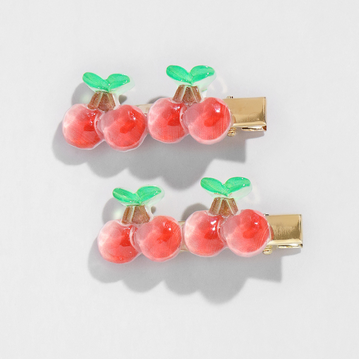 国境を越えて爆発した甘いかわいい赤いベルベットのリボンの蝶ネクタイは、果物のさくらんぼのヘアピンのサイドクリップをシミュレートします