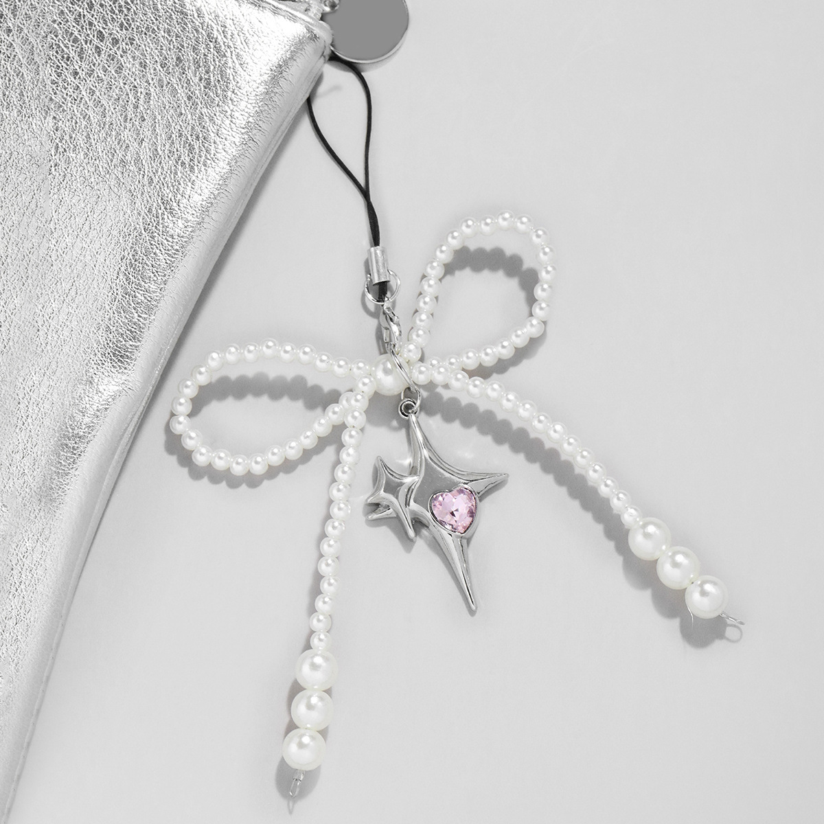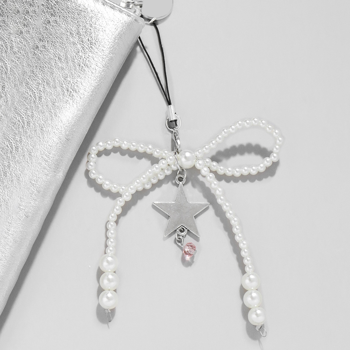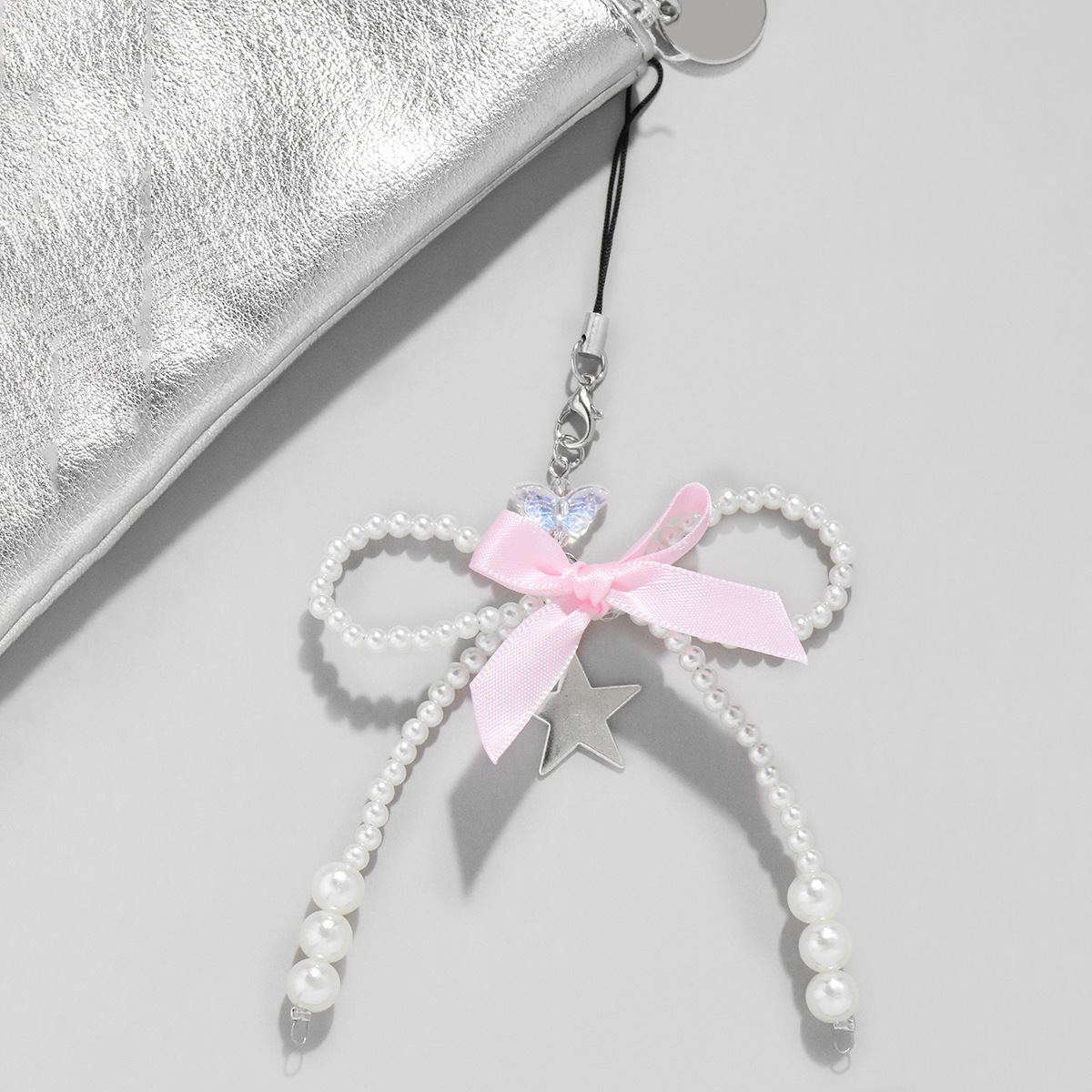 シンプルな手作りビーズ真珠蝶ネクタイ星水晶ペンダント携帯電話ストラップ