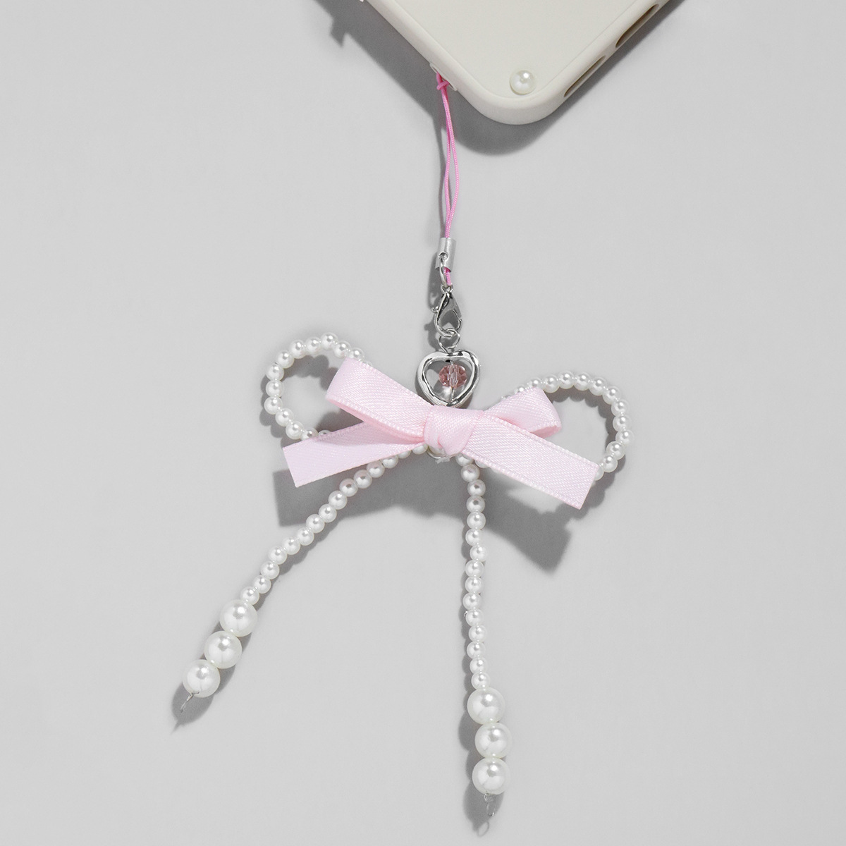 1つのシンプルな手作りビーズ真珠蝶ネクタイピンクリボン携帯電話ストラップ愛水晶ペンダントバッグ