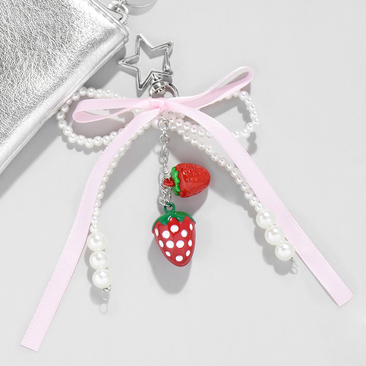 国境を越えて爆発した甘いファッションは真珠の酒の赤いリボンのいちごの鈴のペンダントの星のキーホルダーに似せている