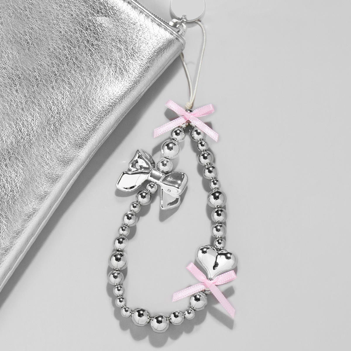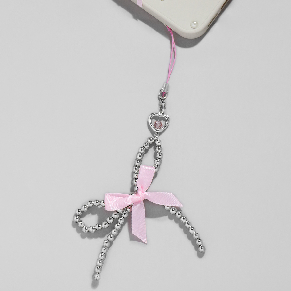 クロスボーダーのファッションに合わせて銀色の手作りビーズCCBピンクの愛のリボン付きの携帯電話の飾り