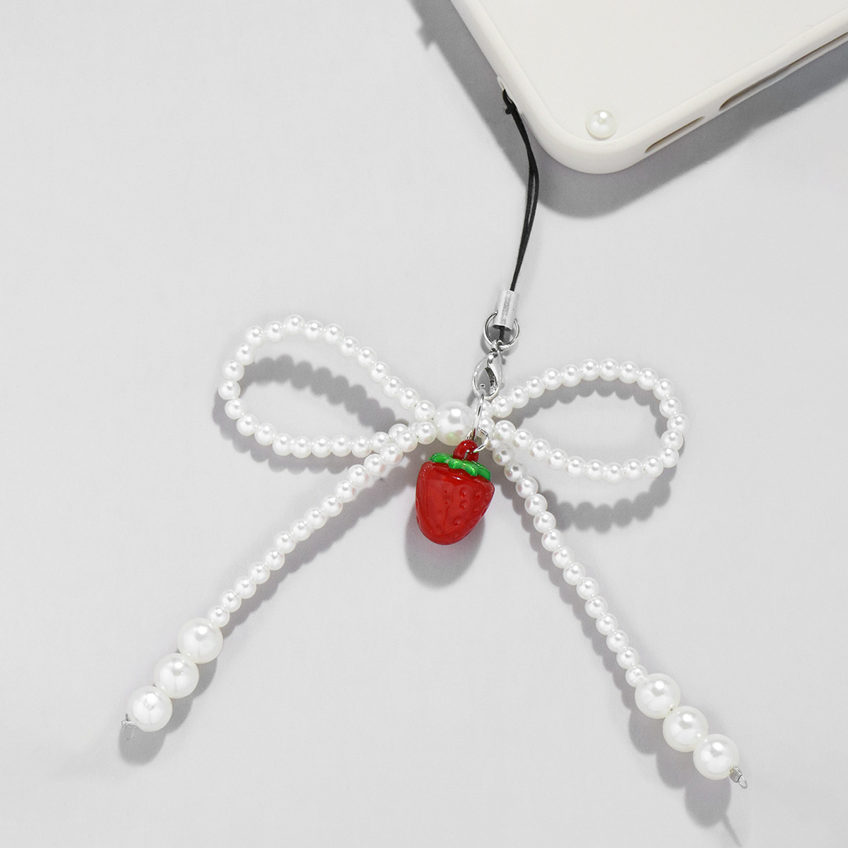 シンプルな手作りビーズ真珠蝶ネクタイ携帯電話ストラップいちご果物ペンダントキーホルダー