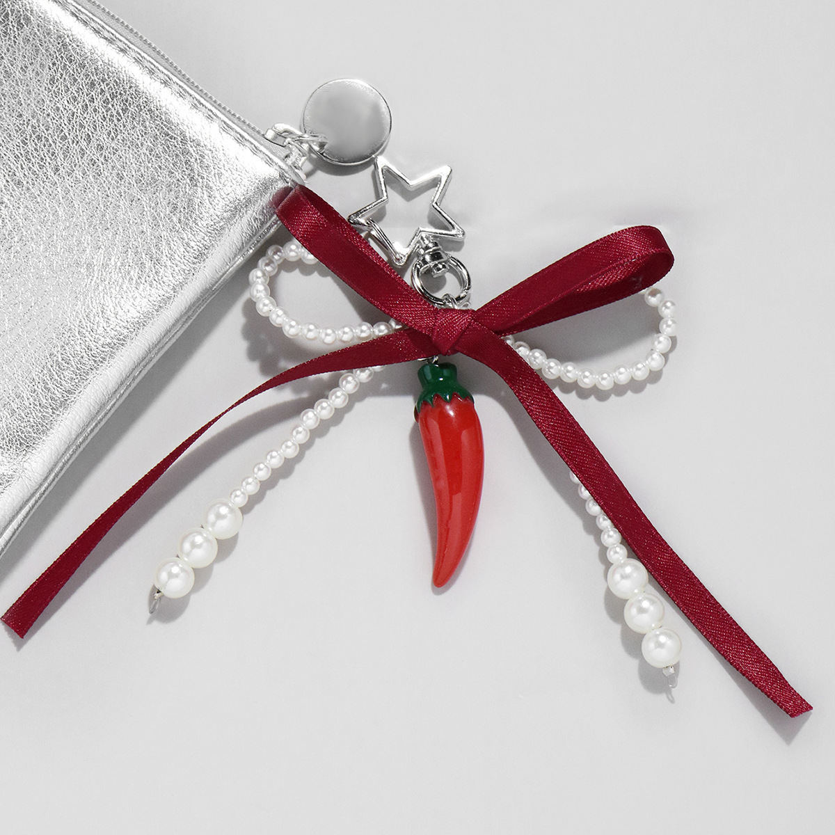 国境を越えて爆発した甘いクールな風のファッションには、真珠の模造唐辛子ペンダントの星のキーホルダーがついています