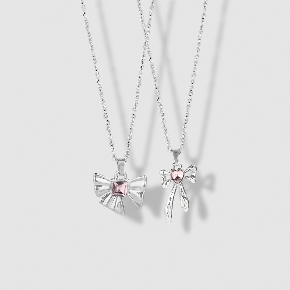 国境を越えて起爆した韓国系ファッションの高級な軽豪華な銀色の蝶ネクタイにピンクのガラスドリルの愛のネックレスをはめ込んだ