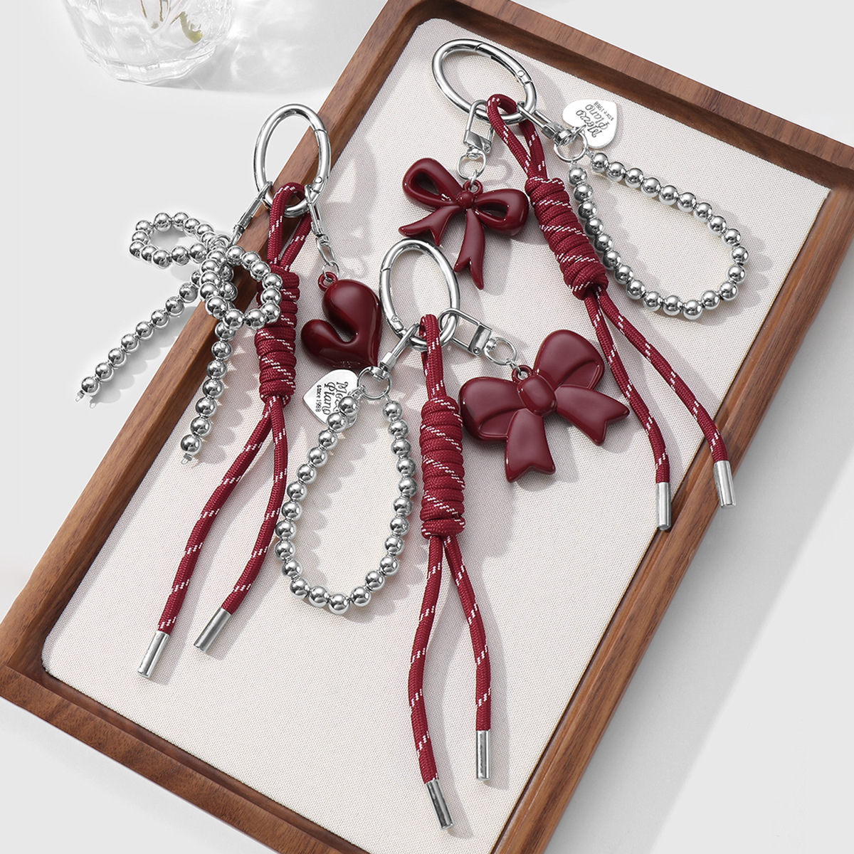 新しい ins 甘くてクールなファッションレトロ CCB ビーズアクリル弓愛編組ロープ DIY キーホルダー
