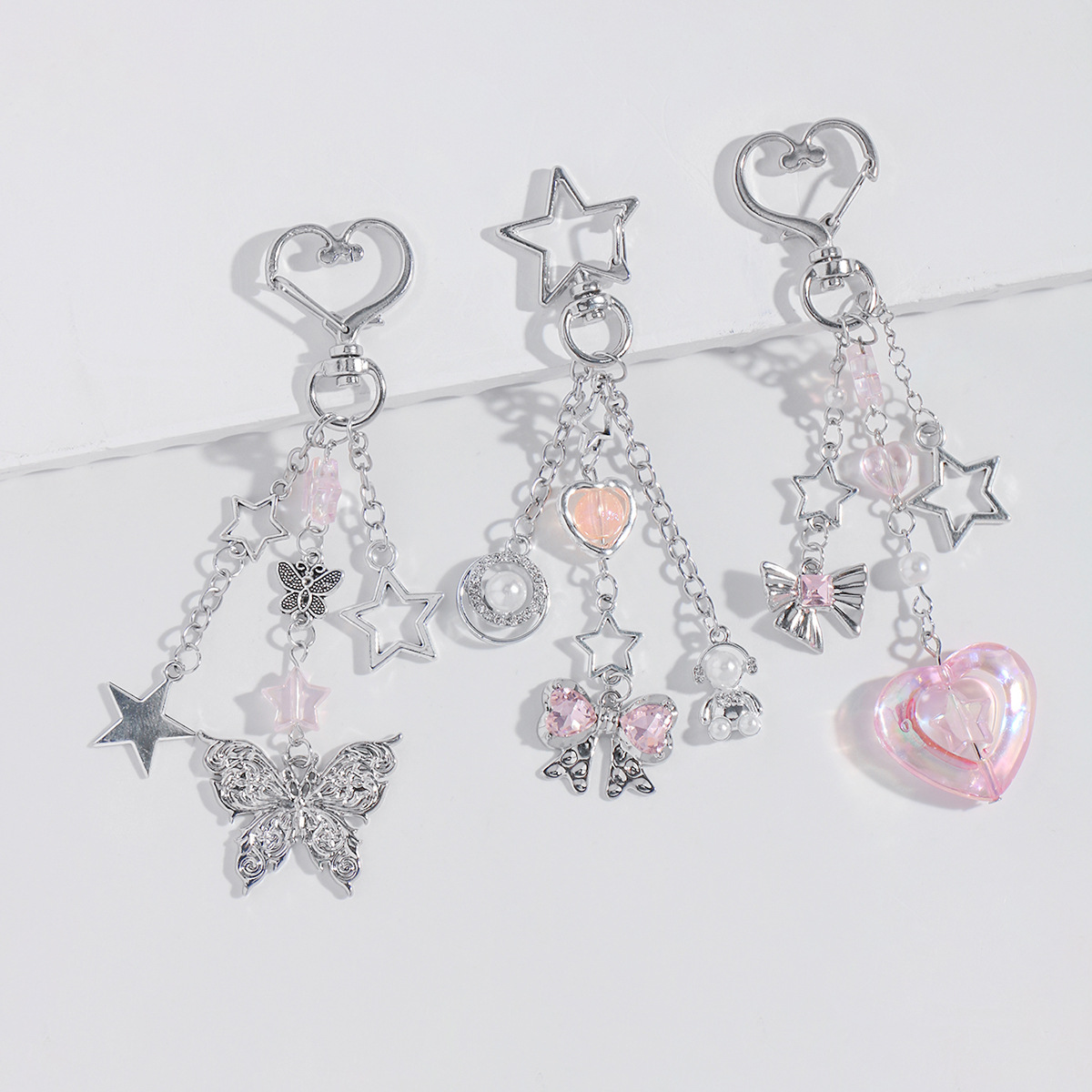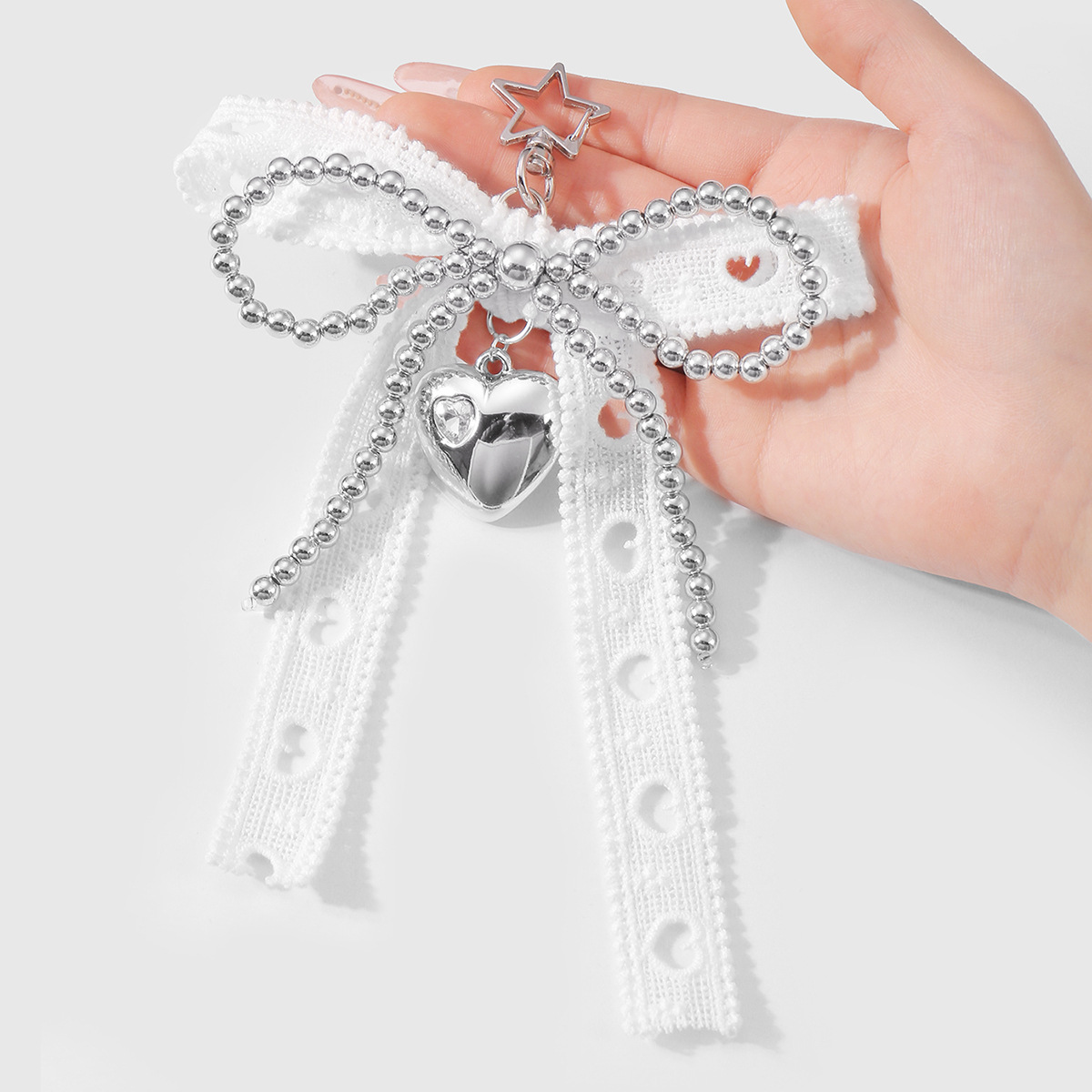 1つのy2k個性シンプルで洗練された銀色CCBビーズ白い愛ネット糸蝶ネクタイ愛DIYキーホルダー