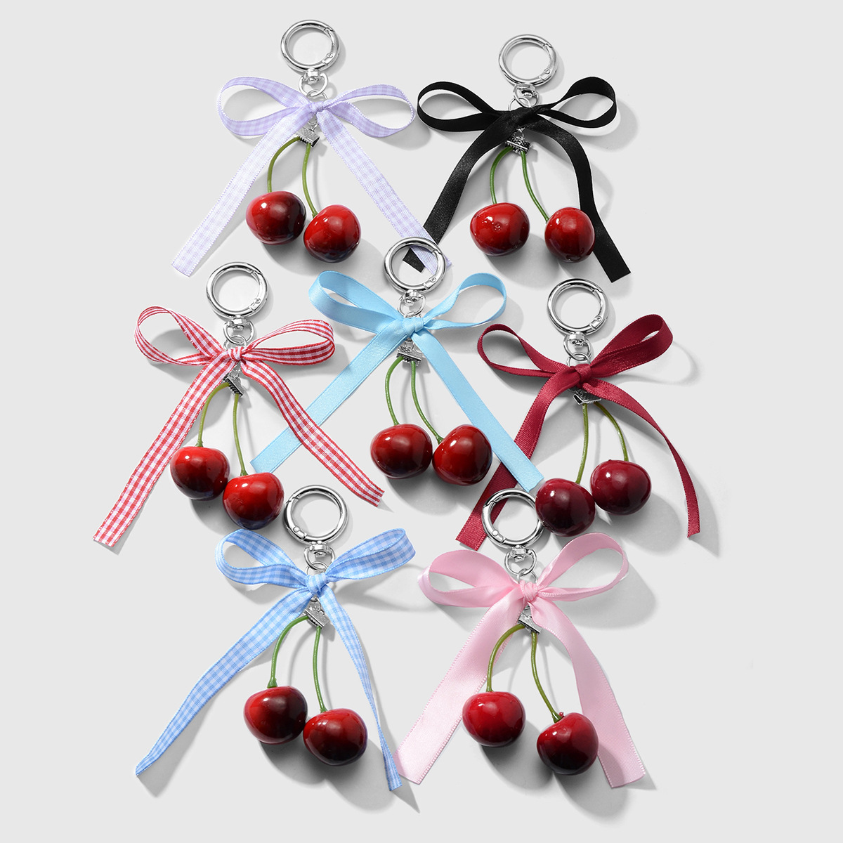 春の新型ins韓系の甘いファッションの経典の純色の蝶結びのシミュレーションのさくらんぼのキーホルダーのペンダント
