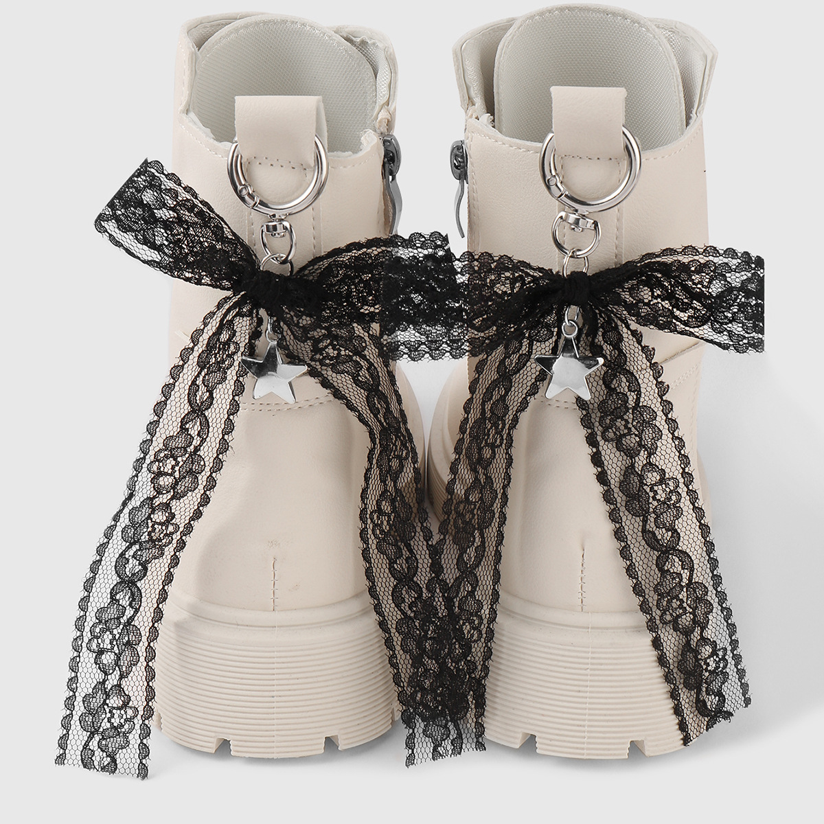 y2k 絶妙なシンプルなレトロな個性黒と白のレースのリボン CCB ラブスター DIY 靴バックル靴の装飾
