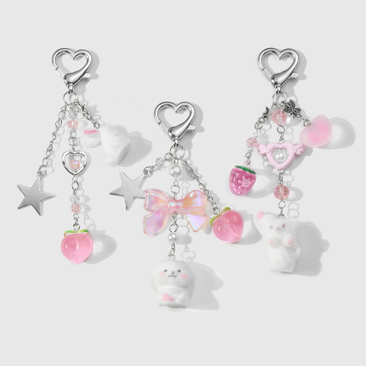 クロスボーダー爆金insかわいい甘いファッション銀色チェーン星シミュレーション果物植毛ウサギのキーホルダー