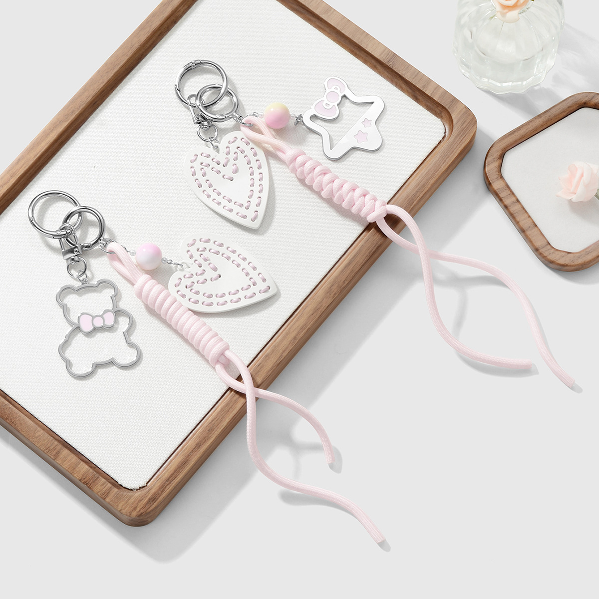 新型insの精巧なファッションの甘い透かし彫りの漫画の油の熊の星の愛の編み物の縄のDIYのキーホルダー