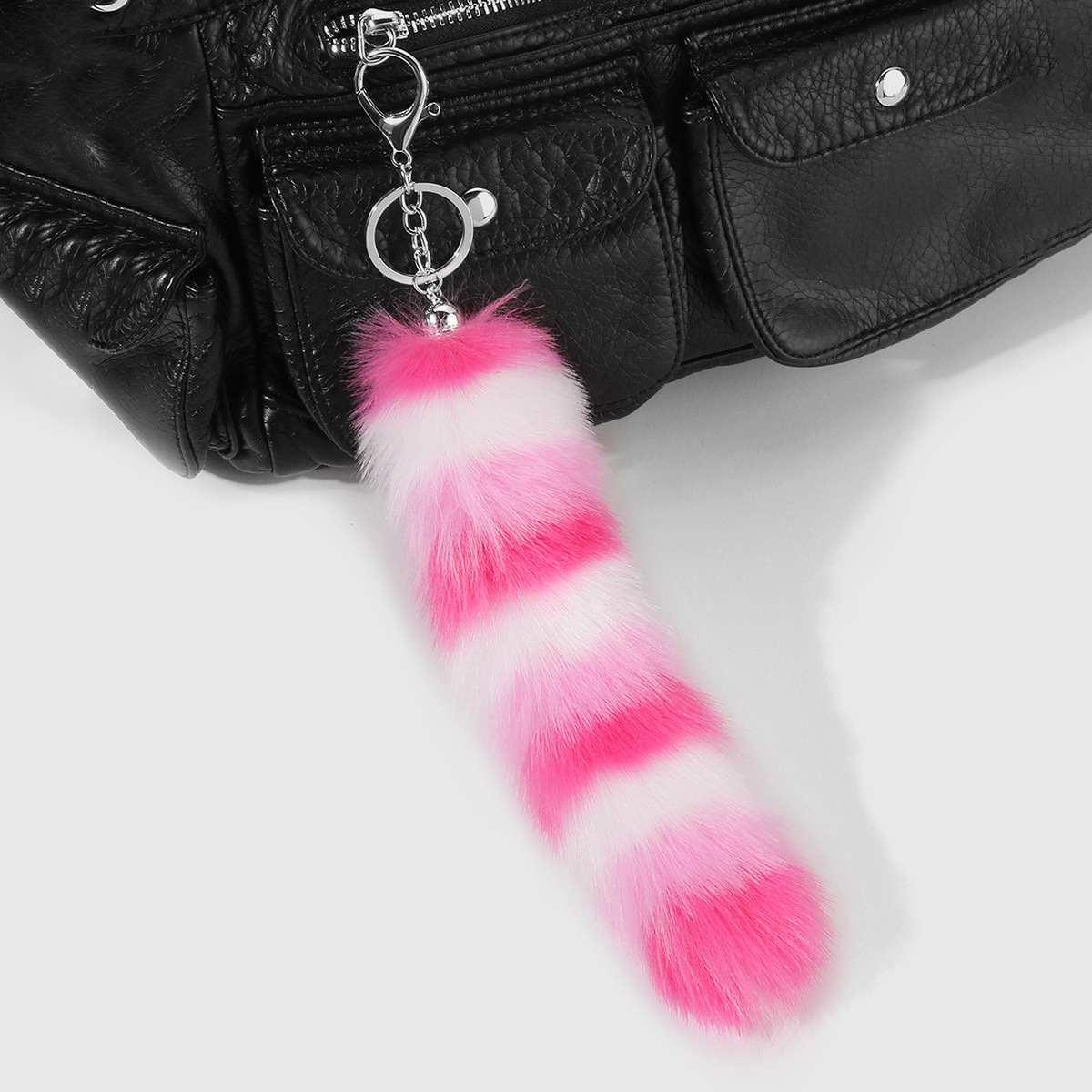 新しいins絶妙な個性甘くてクールな高価値模擬ぬいぐるみヒョウ柄の尾DIYキーホルダーバッグペンダント