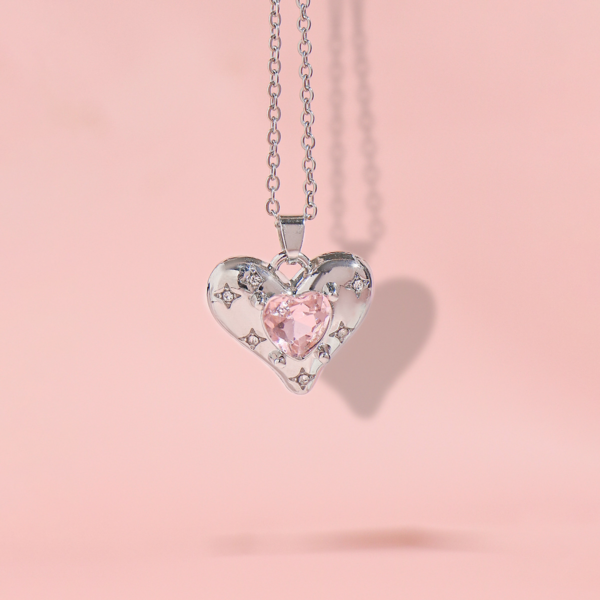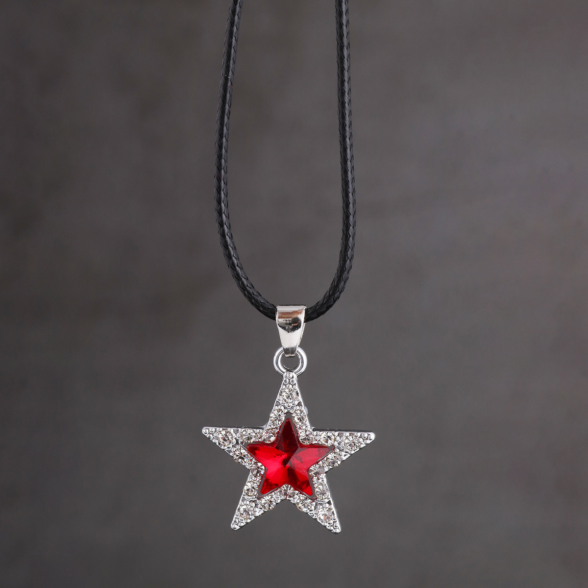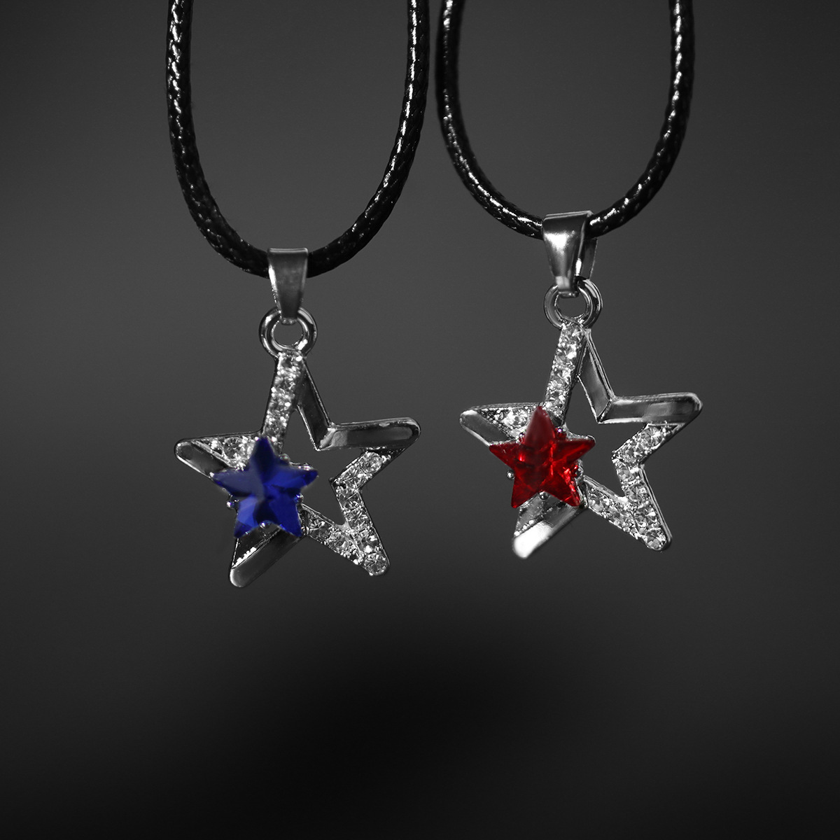 国境を越えて人気のある個性的なファッション新製品のネックレスは、大きなガラス水晶を透かして五角星ペンダントのネックレスをはめ込んだ