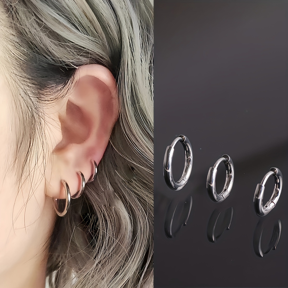 ステンレスピアスヒップホップ流行欧米中性素輪高級感デザイン感小衆流行耳輪耳飾り