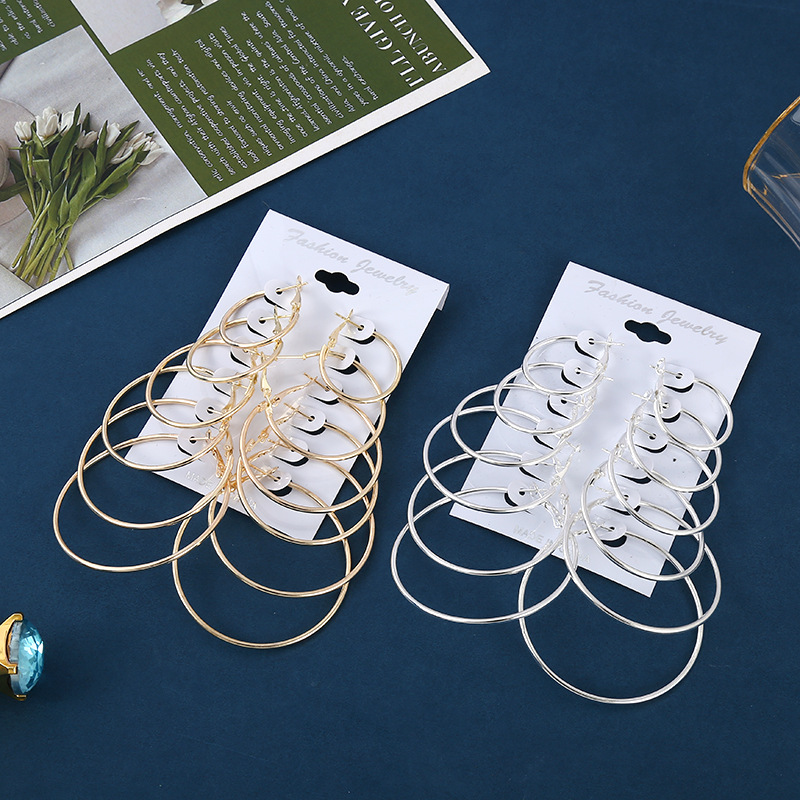 Ins欧米のイヤリング女性1セット6対のフロストと波の大きさの耳輪の組み合わせはシンプルでファッション的な耳飾りです。
