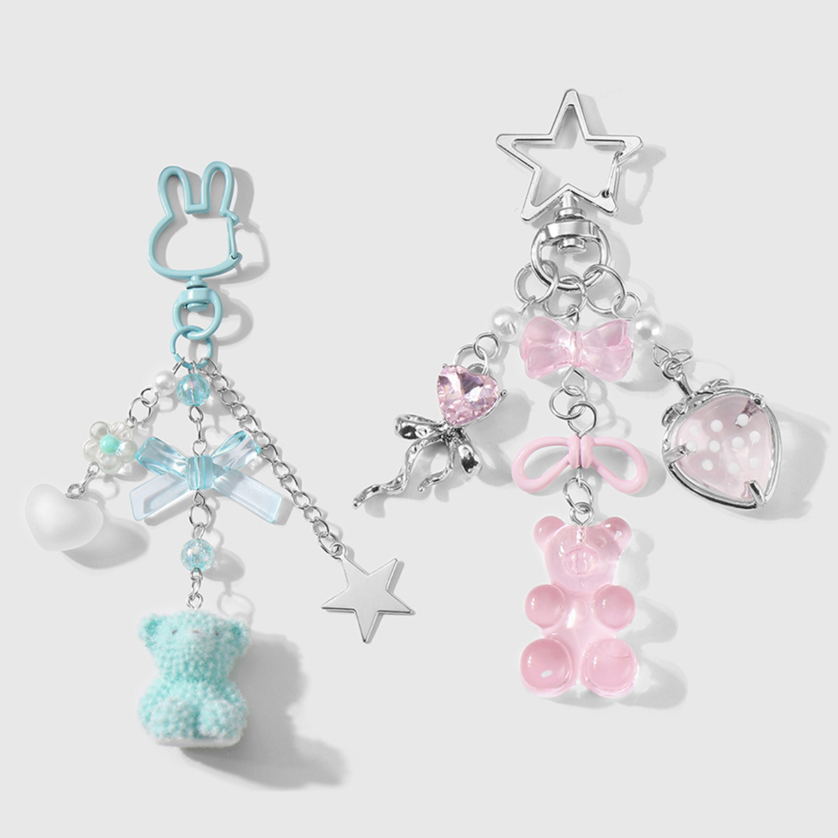 新しいイン絶妙でかわいい高価値マルチカラー樹脂植毛クマ愛スターイチゴ DIY キーホルダー