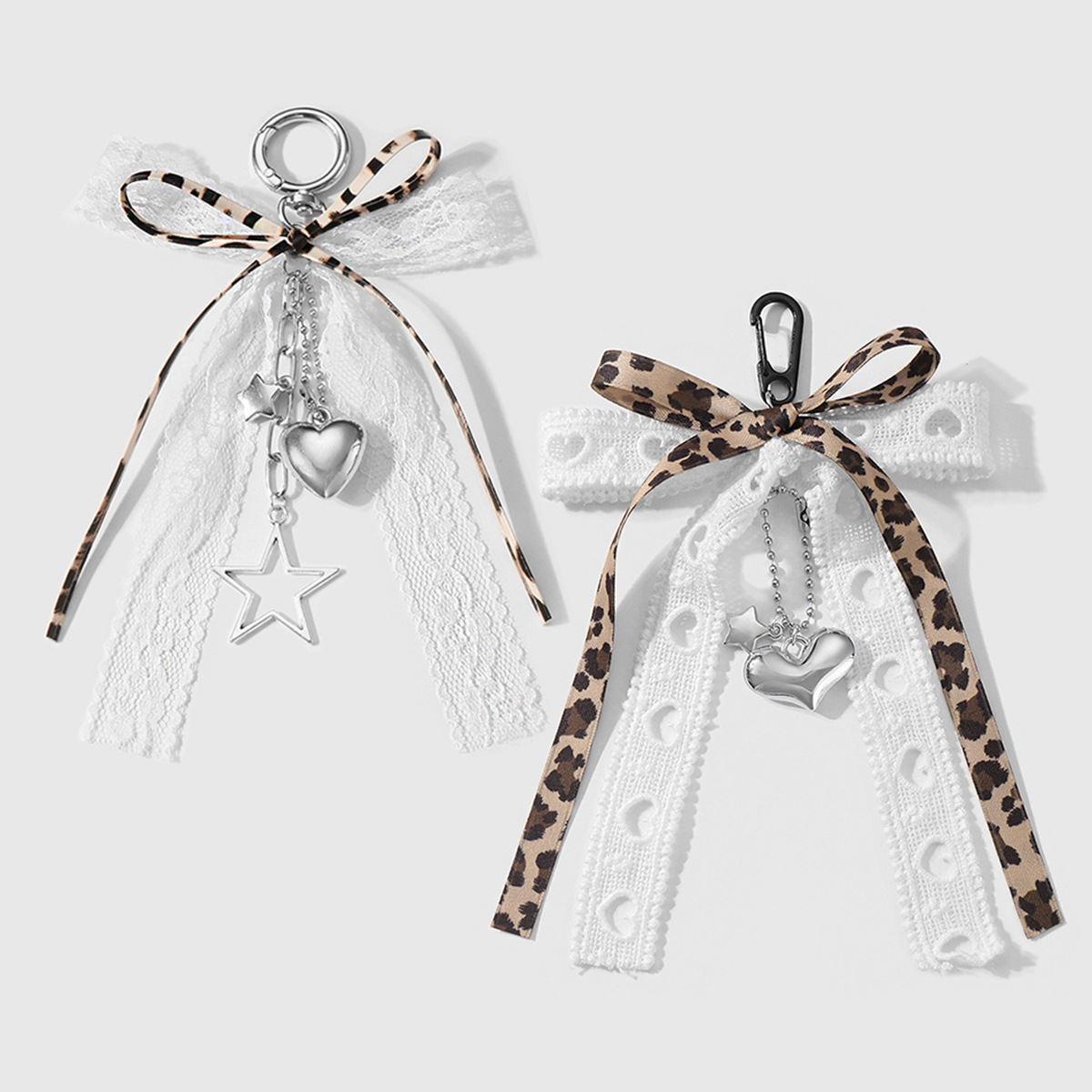 新しいy2k甘くてクールでシンプルでファッショナブルなヒョウ柄レザーウェビングレースリボンCCBラブスターキーホルダー