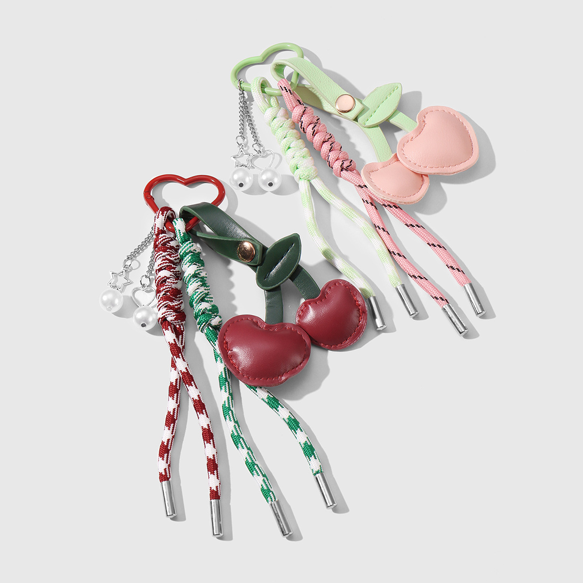 Iu系風復古的で洗練された甘いクールな高級感皮革シミュレーションさくらんぼ編み紐DIYキーホルダーストラップ