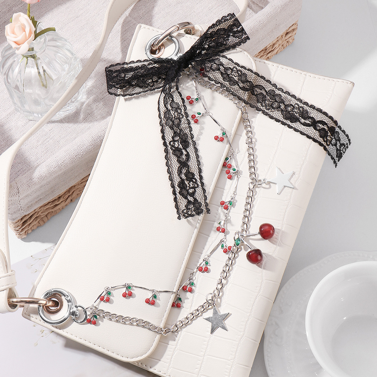 新しい y2k 甘くてクールな個性ダークスタイルブラックレースリボン樹脂ラインストーンチェリーイチゴ DIY バッグペンダント
