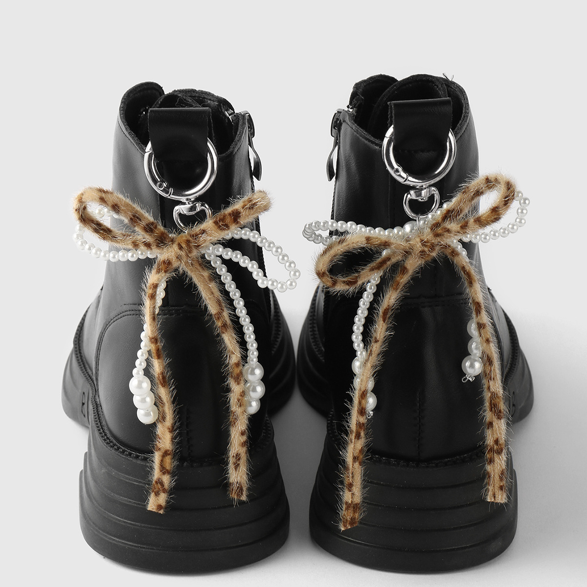 新しいインレトロファッションシンプルな高価値模造真珠ヒョウ柄ぬいぐるみウェビングリボン DIY 靴バックル装飾