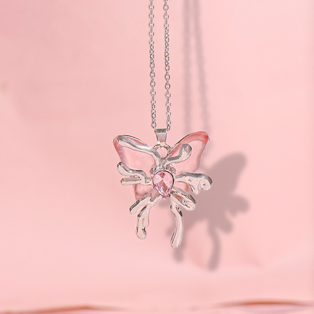 2024春夏の新型欧米の人気カップルの軽豪華な高級感には、クロスの愛の蝶のネックレスが入っています。