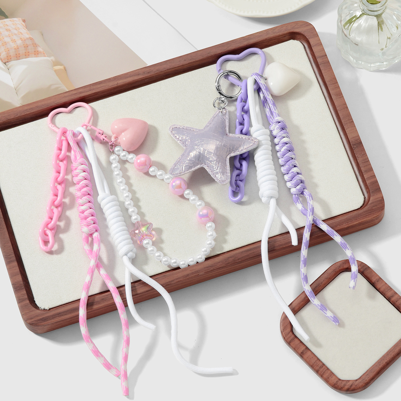 新しいミュウスタイルの絶妙で甘い多用途レザースターアクリルラブビーズDIYキーホルダーバッグペンダント