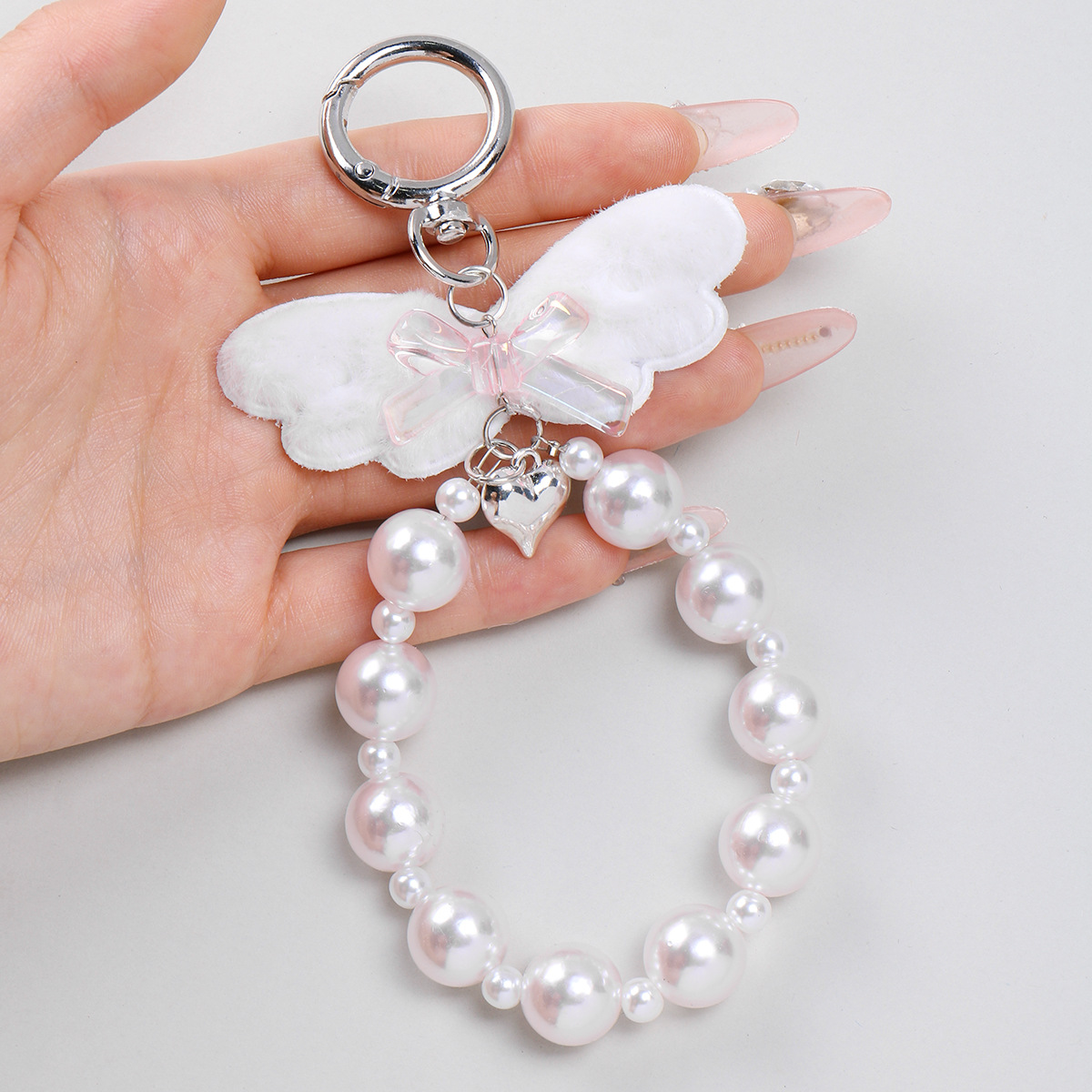 クロスボーダーの爆発金はシンプルで甘美で、真珠の白い天使の翼の蝶結びのぬいぐるみの愛のキーホルダーに似せています。