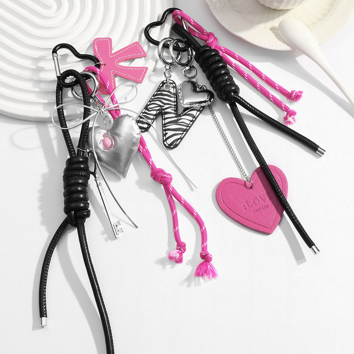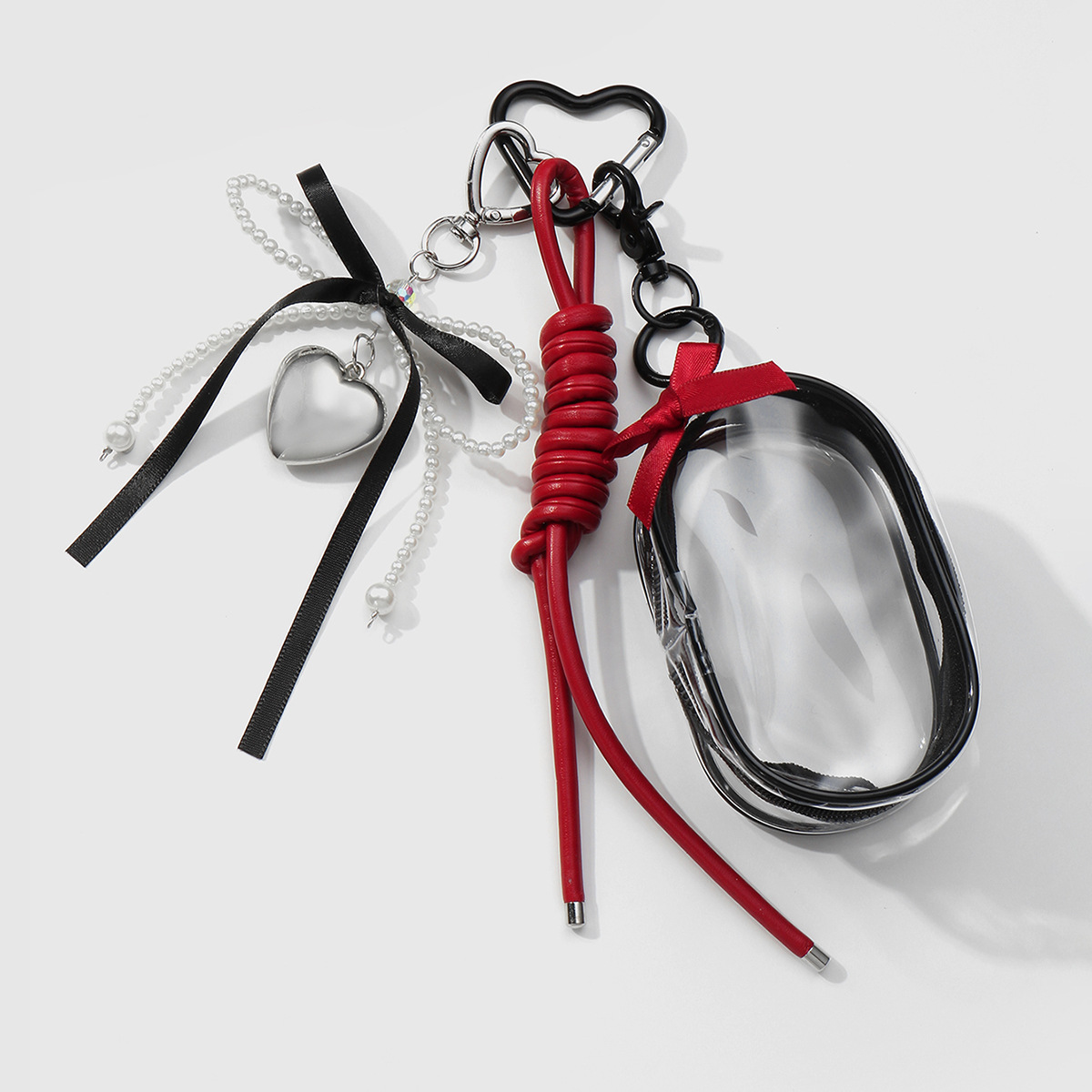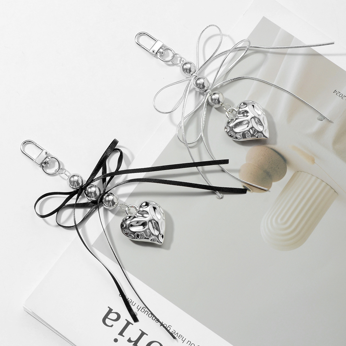 クロスボーダーの爆発金y 2kの潮流の精巧なファッションの銀色のCCBの愛の皮の縄のリボンのリボンのキーホルダーのペンダント