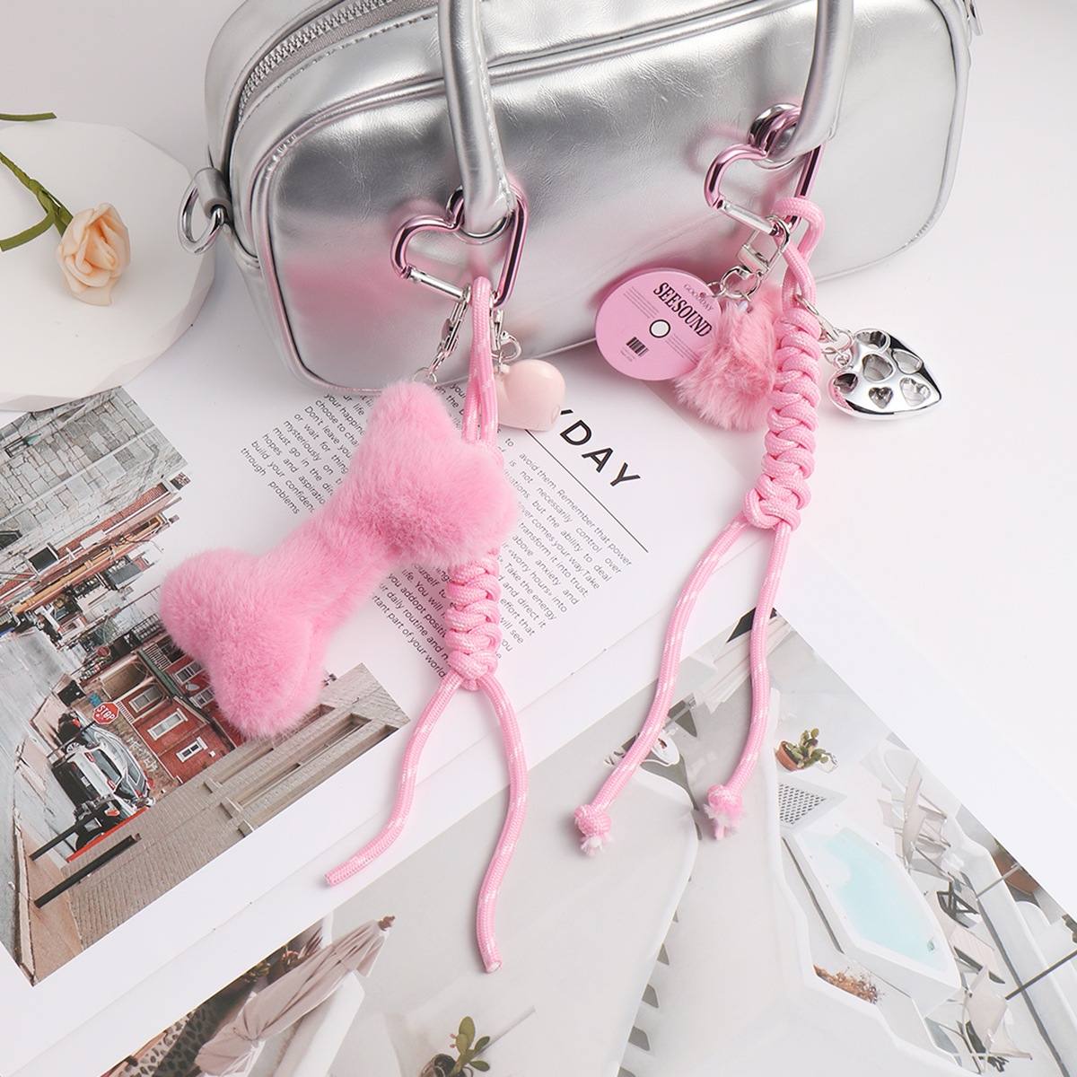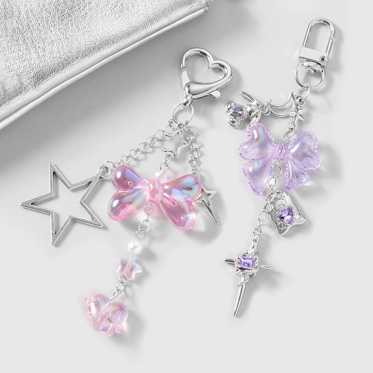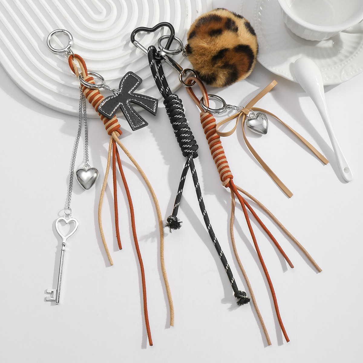クロスボーダーホットスタイルy2k個性絶妙なファッションラインストーンリボンCCBラブファーボールDIYキーホルダーペンダント