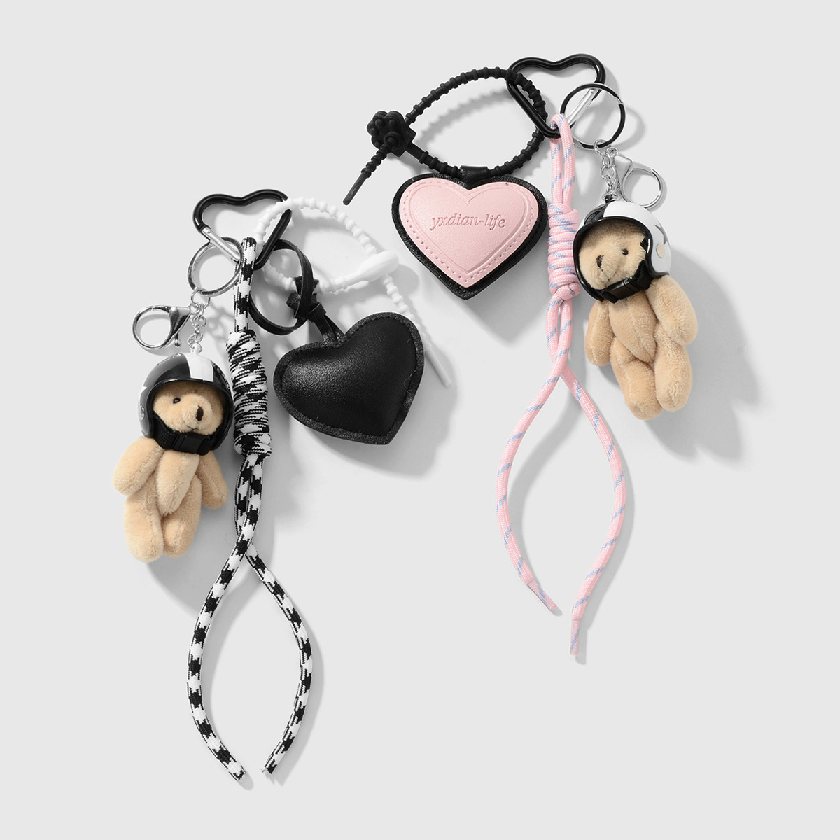 新しいミュウスタイルのかわいくて絶妙なカップルスタイルのレザーラブ漫画ヘルメットぬいぐるみクマDIYキーホルダー