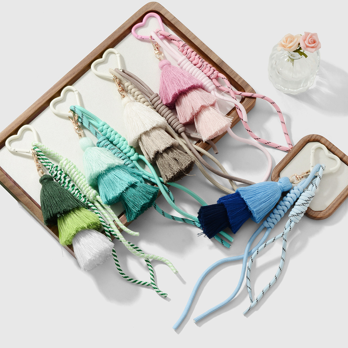 新しいイン絶妙なレトロエスニックスタイル多層グラデーション手作りタッセル織ロープ DIY キーホルダーペンダント
