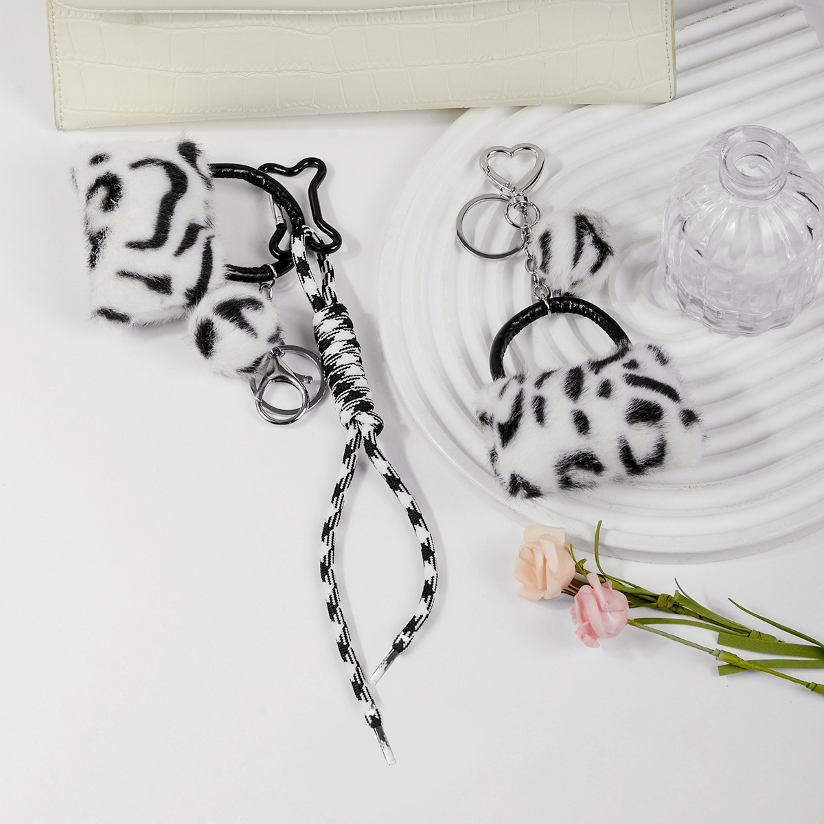 クロスボーダー爆金ins韓系甘美でクールな白黒ヒョウ柄のベルベットの小包は吊り紐DIYキーホルダーを調節できる