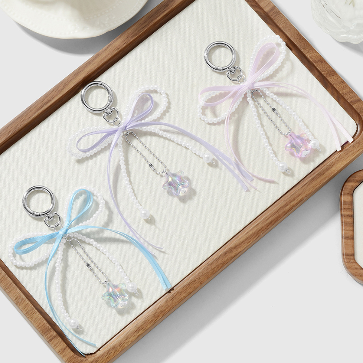 新しいインシンプルで甘くて多用途な模造パールビーズウェビングリボン樹脂スターリングサークル DIY キーホルダー