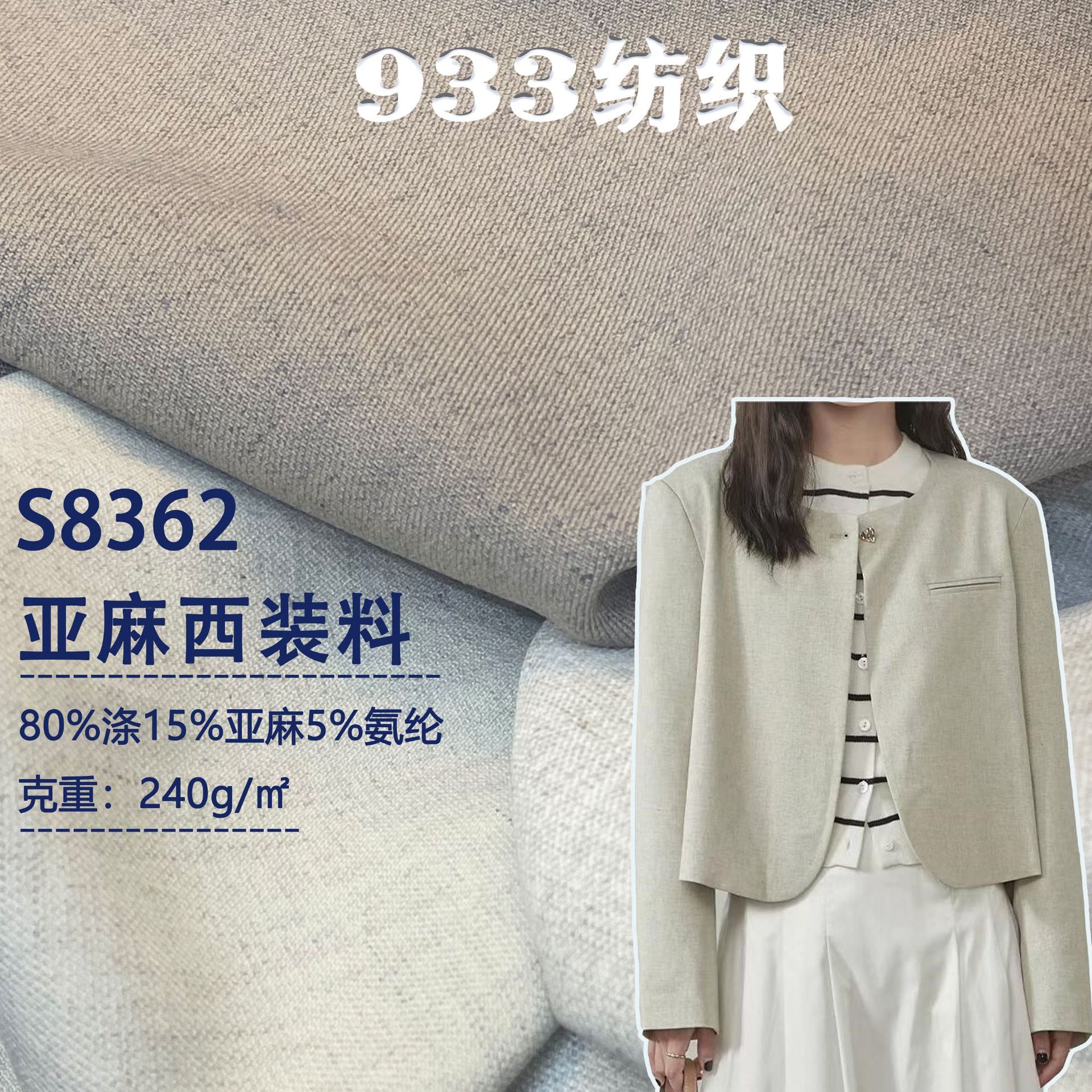 亜麻スーツ生地240グラムポリエステル混紡生地綿麻感小香風カーディガン生地