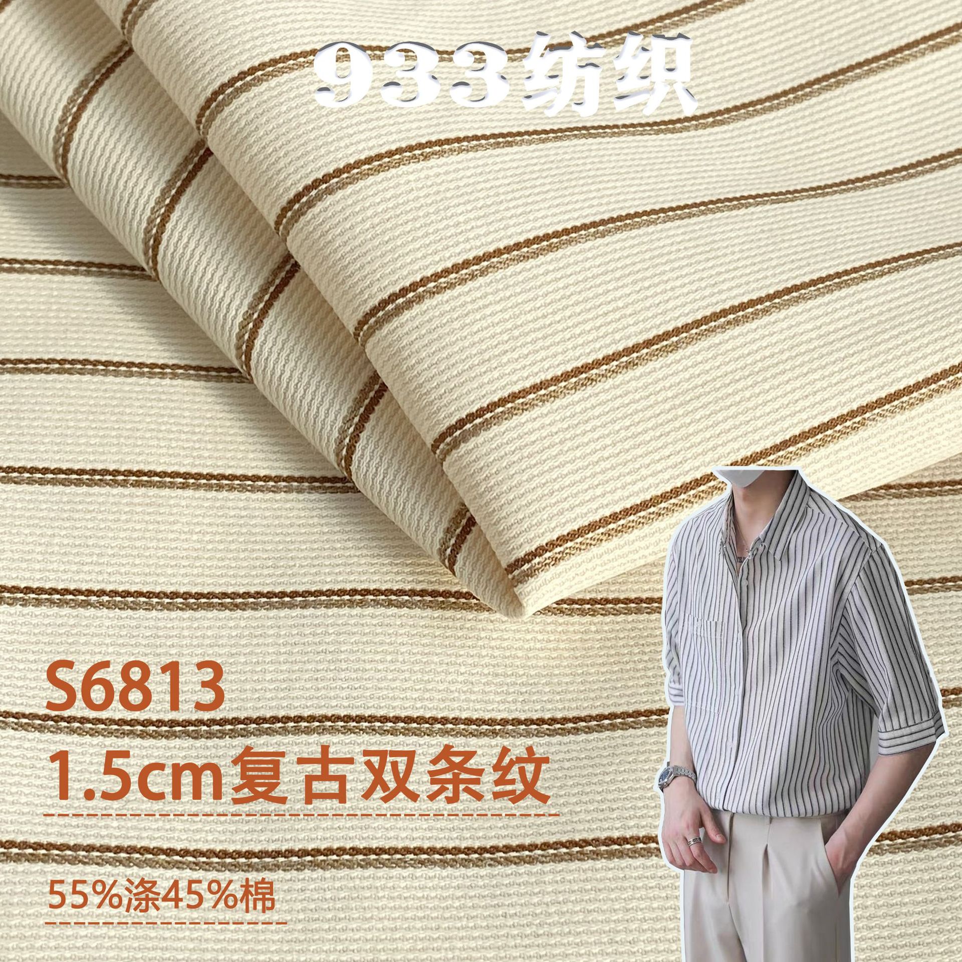 色織りストライプ生地1.5cmレトロダブルストライプ生地コットンポリエステル混紡作業服メンズビジネスシャツ生地