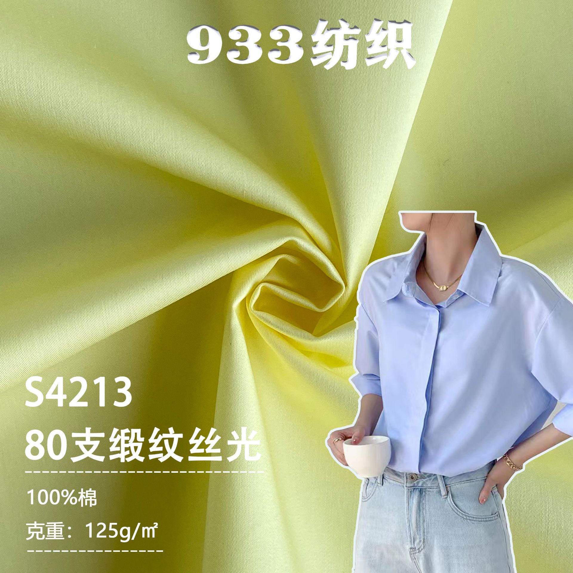 80本125グラムの高密な綾織りの紋様は、天糸生地の高品質な光沢感のある綿シャツ生地に似せている