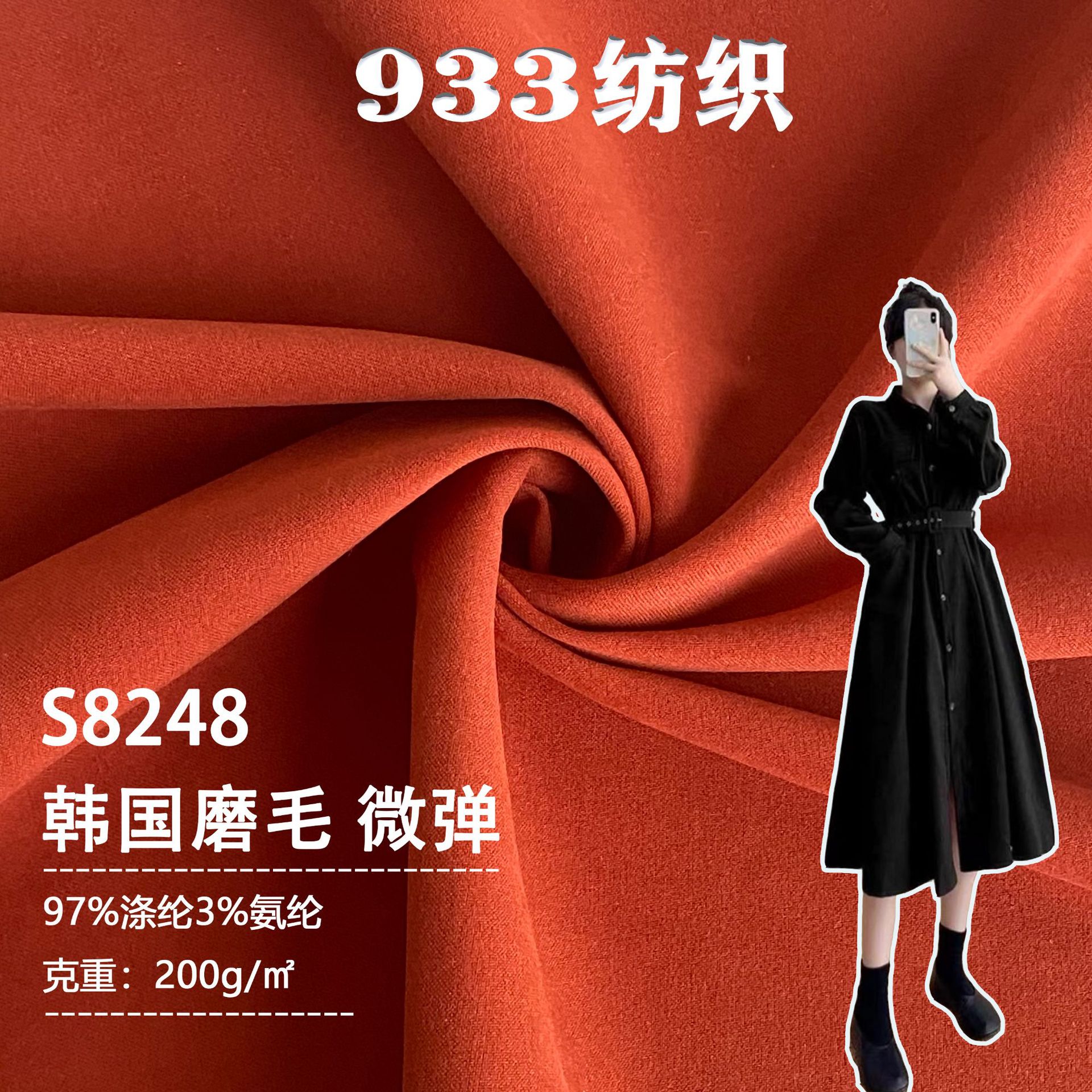 200グラム韓国磨毛弾力布風衣生地保温毛感無地ワンピース生地模造毛シャツ布
