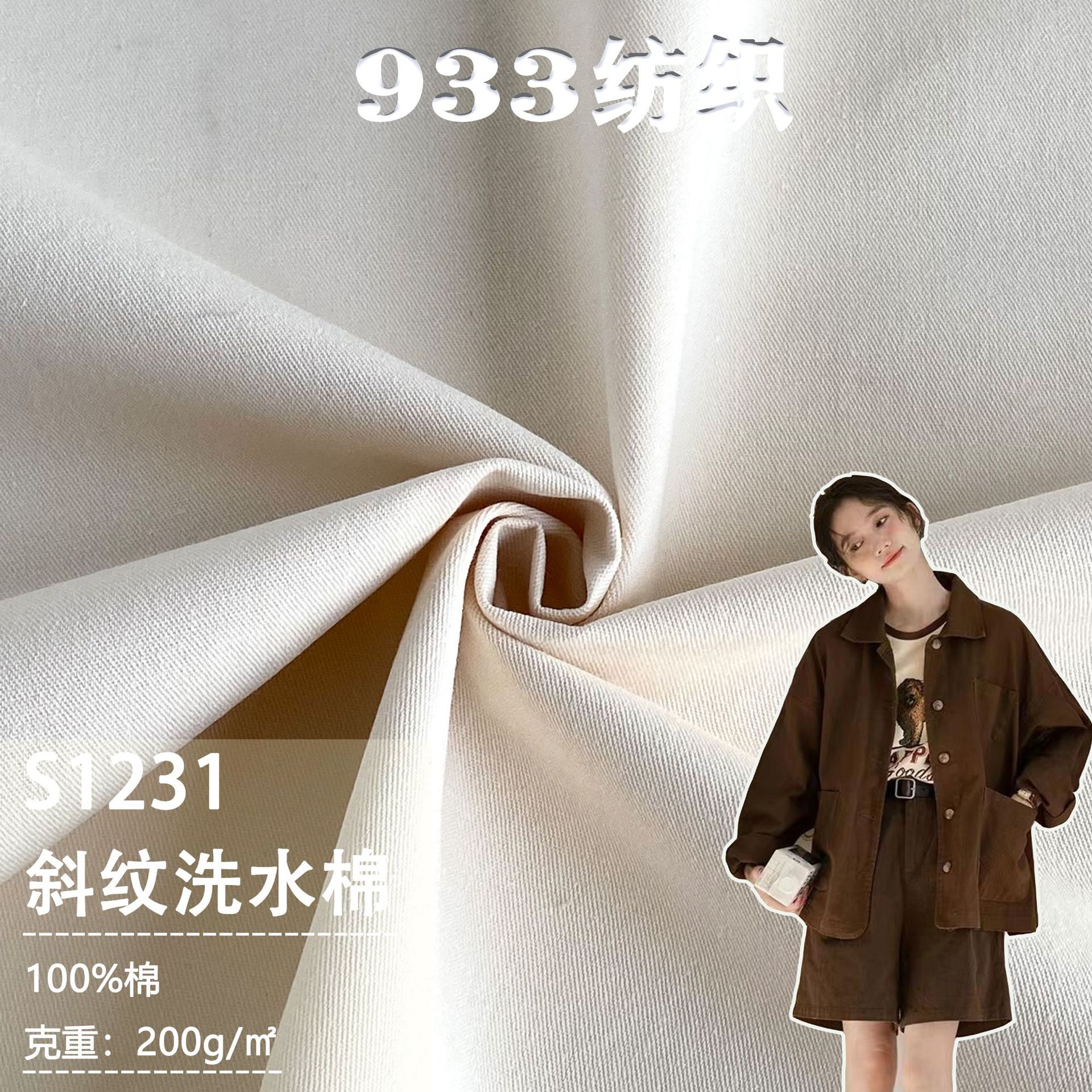 210グラムの高品質の精密櫛の綿の騎手の斜めの水洗いの綿は廃土の風の質感の工装の子供服の生地を洗います。