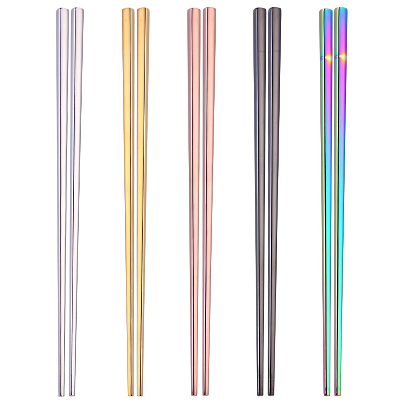 アマゾン304ステンレス食器箸電気金メッキ七色角型ホテル箸セット代発