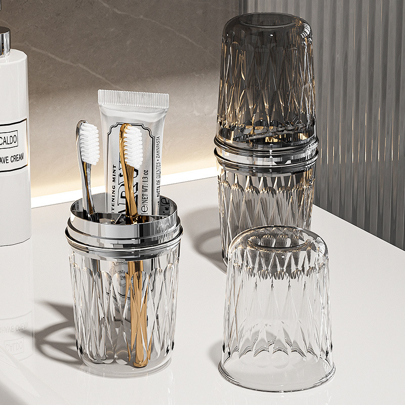 新しいトラベルマウスウォッシュカップセット、ポータブルでシンプルな学生寮のウォッシュカップ、プラスチックカップ、歯ブラシと歯磨き粉の収納
