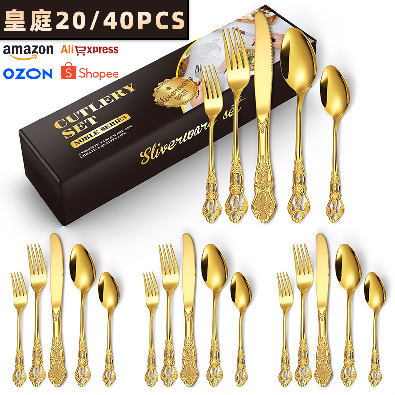 皇庭ステンレス食器セット20/40点セットステーキナイフフォークスプーン家庭用ホテル高級レリーフ西洋食器