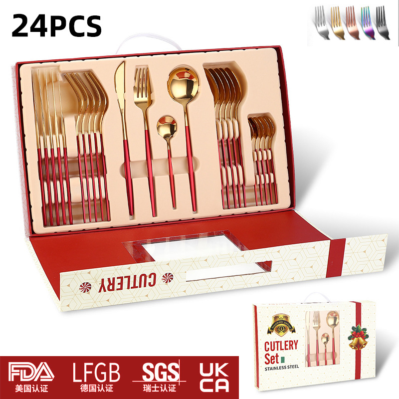 国境を越えたポルトガルステンレス食器24点セットホテルレストランステーキナイフフォークスプーンセットクリスマスギフトボックス