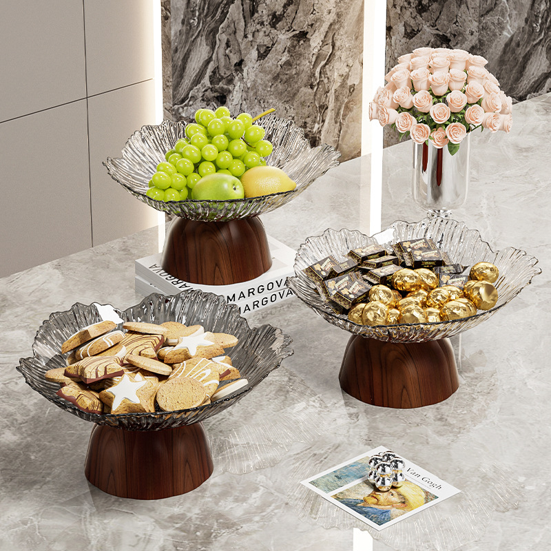 クリーム風花びら果物皿熊模様高颜値果物皿家庭用客間プラスチック透明間食茶皿