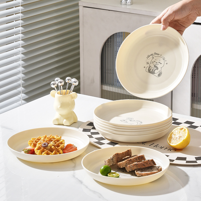 漫画の熊の丸い皿のかわいい子犬の円盤の家庭用子供の食事の皿の野菜の皿のプラスチックの果物の皿は骨の皿を吐きます。