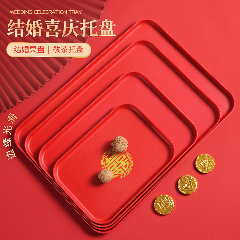 结婚専用喜字トレー结婚式敬茶敬酒皿家庭用リビングルームお祝いキャンディフルーツディッシュプラスチックpp