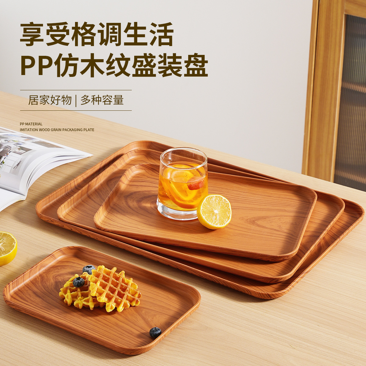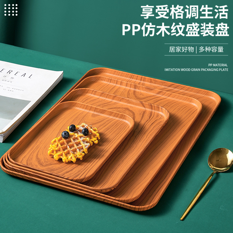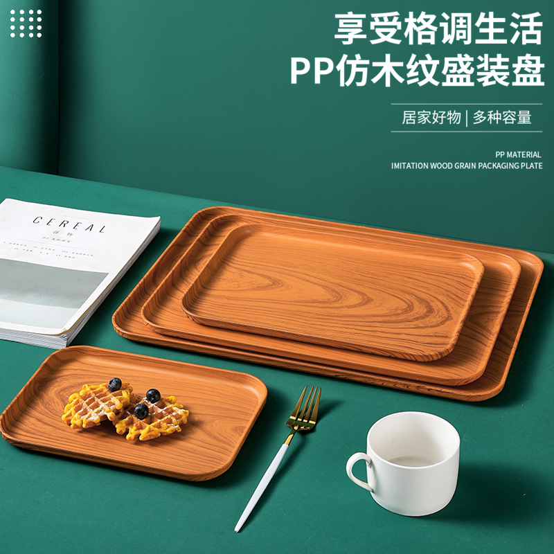 国境を越えた起爆金は木目トレイPPプラスチック小麦皿家庭用ティーカップ果物皿カフェ菓子皿